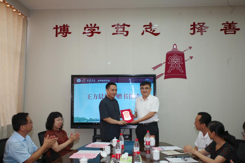 7月8日上午,初等教育学院理事会成立之际,学院知名校友王方晨先生再次向母校捐赠新作。学校党委副书记丰家雷出席捐赠仪式。