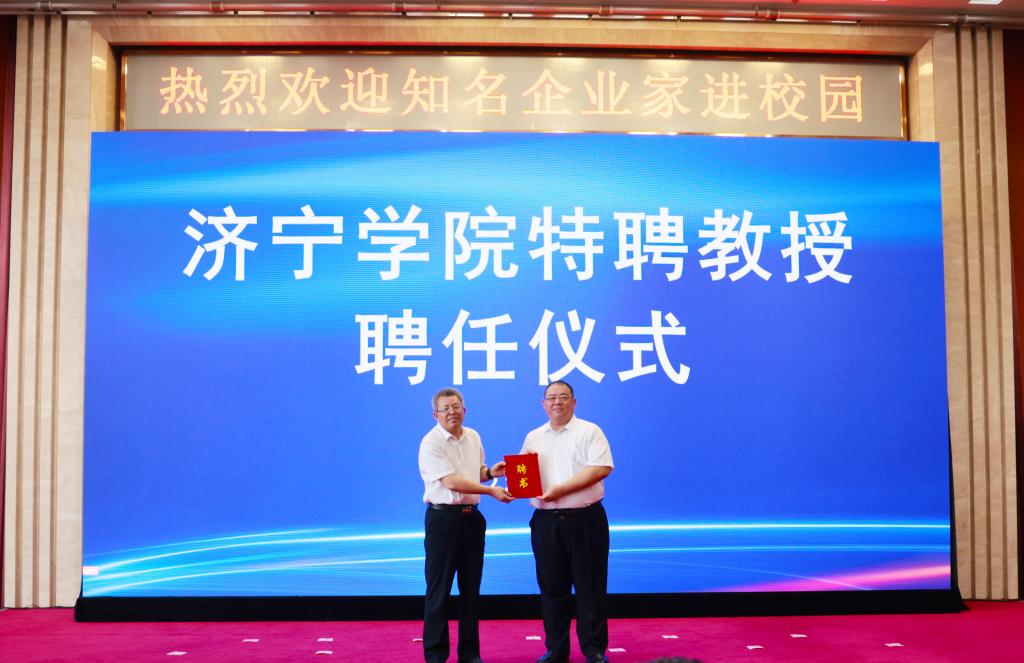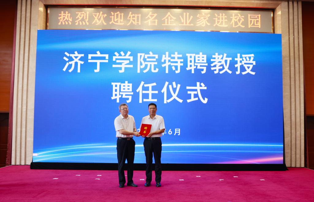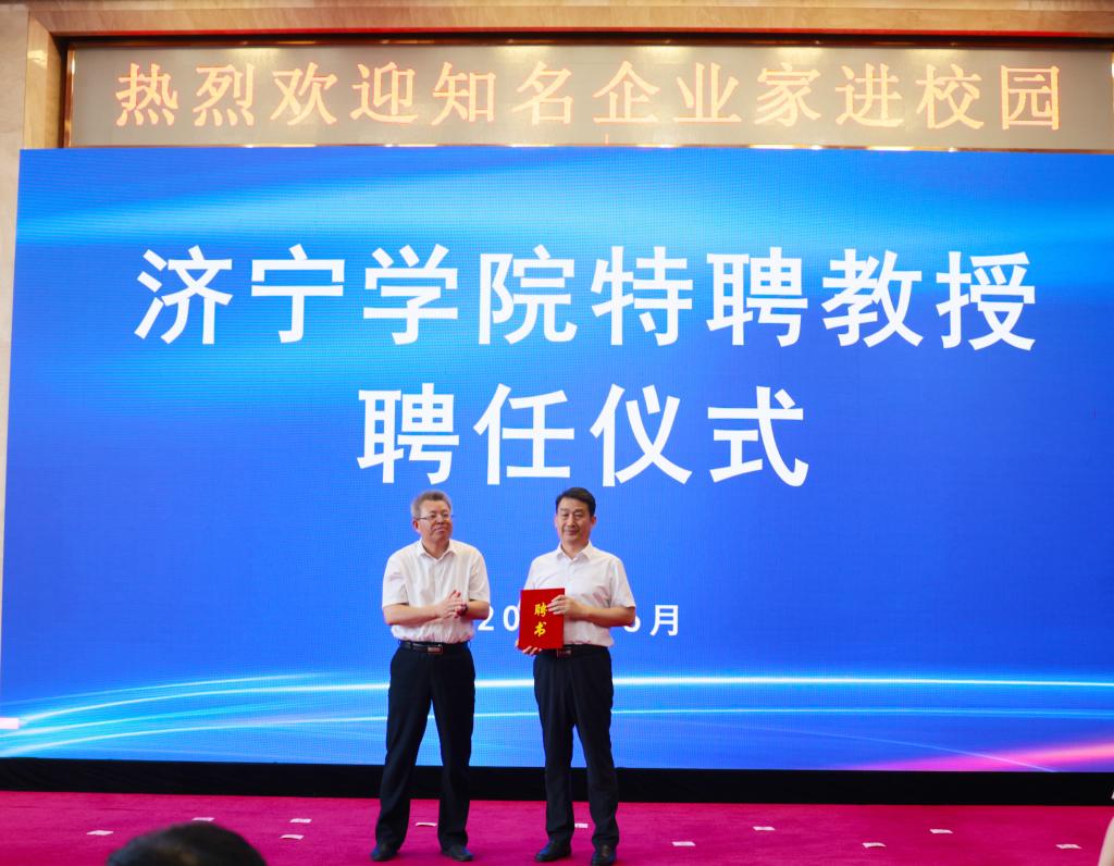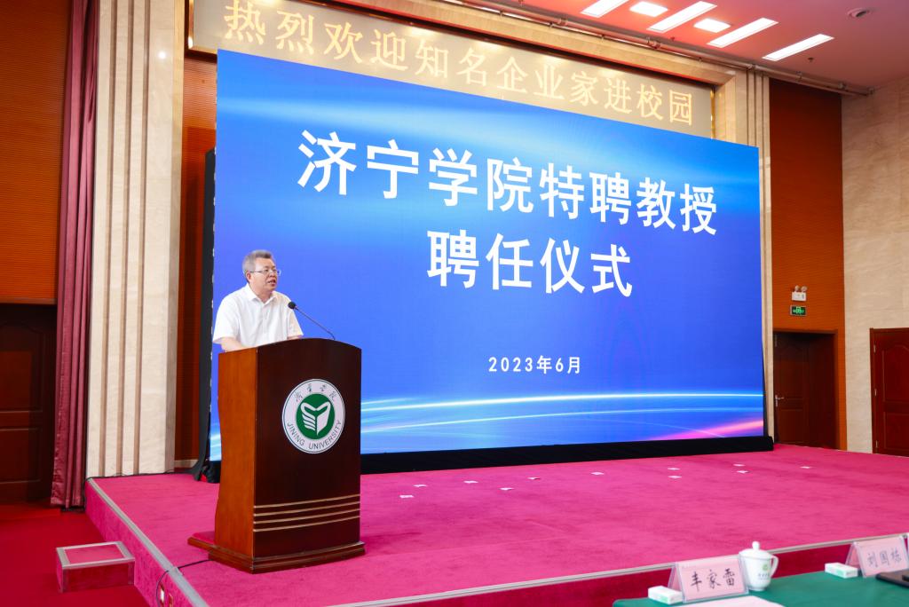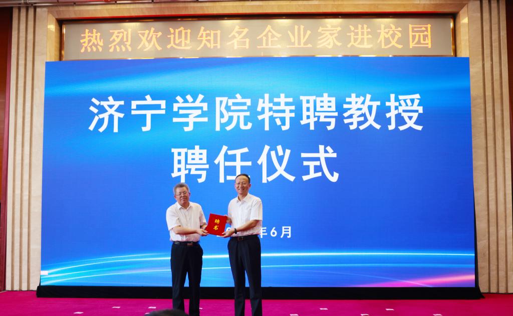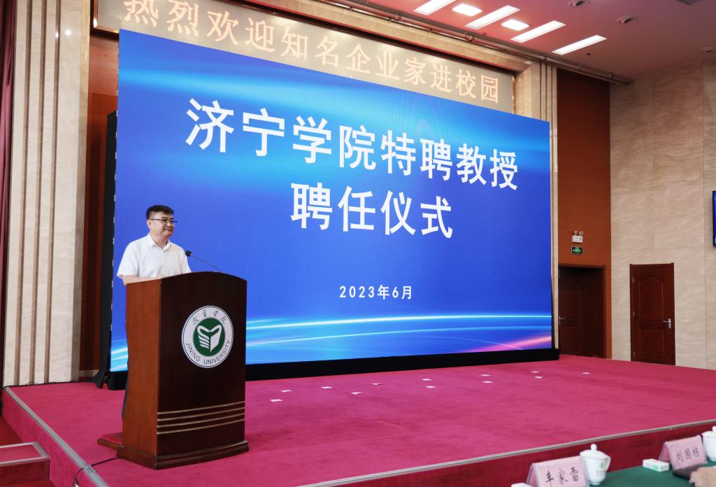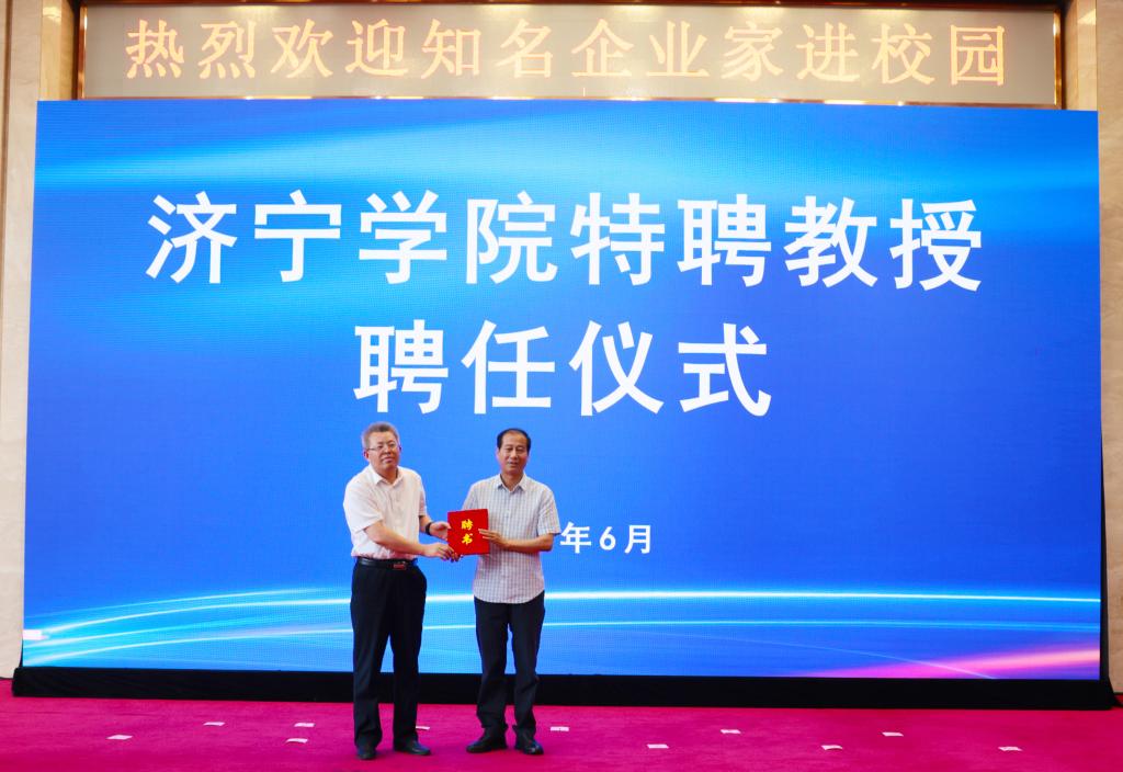 6月29日下午,学校在科技文化大楼隆重举行仪式,聘任济宁能源发展集团有限公司党委书记、董事长张广宇,山东公用控股有限公司党委书记、董事长李鲁,济宁国有资产投资控股有限公司党委书记、董事长虢洪增,鲁泰控股集团党委书记、董事长李合军,山东祥通集团董事长、济宁市作家协会主席张建鲁,山东东宏管业股份有限公司党委书记、副董事长、总裁倪奉尧等为我校特聘教授。学校党委书记杨天梅,校领导丰家雷、赵明、孔繁润、刘国栋、张永强出席聘任仪式。仪式由党委副书记丰家雷主持。