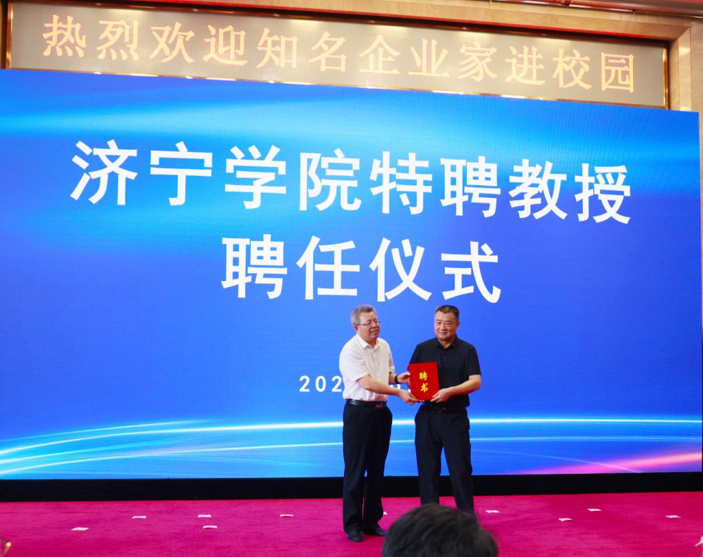 杨天梅对受聘教授加盟济宁学院表示诚挚的感谢。他强调,敦聘各位企业家为学校特聘教授是学校与企业资源的深度对接,是应用型高校建设的创新之举。希望各位特聘教授在百忙之中多走进校园,将创新开拓的发展理念、宝贵的创业经验、高效的管理智慧授予师生,开阔师生视野、提升师生思想境界、提振师生干事创业激情,助力学校高质量发展。学校将以此次敦聘为契机,以最诚恳的姿态,以最有力的行动,搭建与企业沟通、交流、对接、合作的平台,构建起校企互动的协调机制,真正将校企合作路子走深走实,走出成效。他希望校企双方秉承“携手共赢”的理念,发挥彼此的资源优势,在校企人才共引共享,共建实验室、研发平台、研究团队,联合技术攻关与申报科研项目、成果,推进人员相互挂职等方面,实现校企相长、互促共进,共同为地方经济高质量发展添砖加瓦、添彩献力。