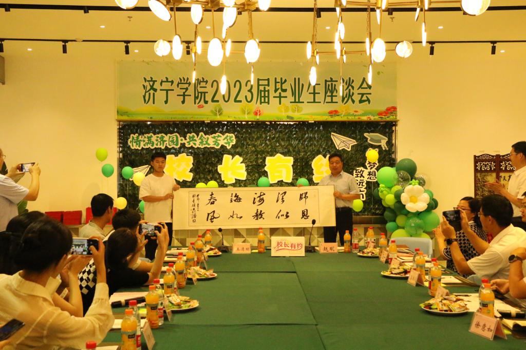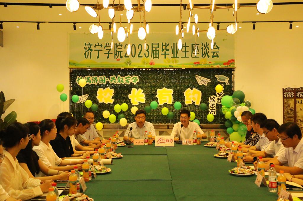 6月15日下午,学校在广场餐厅举办“情满济园·共叙芳华”2023届毕业生座谈会暨“校长有约”共进晚餐活动。党委副书记、校长王清明,校党委委员、副校长赵明出席活动,与14名来自不同学院、专业的2023届毕业生代表座谈并共进晚餐。党委办公室、学生工作处、教务处、后勤管理与基建处、团委等相关职能部门和二级学院党委副书记、团委书记代表参加活动。会议由赵明主持。