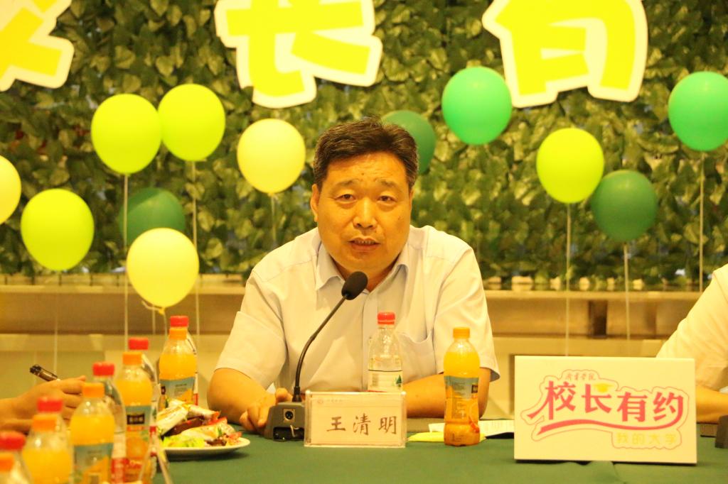 王清明认真倾听了毕业生代表的心声,详细记录了大家提出的意见建议,并就同学们关心的问题进行了逐一解答。他为同学们通过辛勤努力所取得的优异成绩深感高兴和自豪,对同学们的深入思考和高质量建言献策表示充分肯定,对大家积极关注学校发展的主人翁精神表示高度赞扬。王清明指出,2023届毕业生是时代奔腾、学校发展的参与者和见证者,亲历了中华人民共和国成立70周年、中国共产党成立100周年、中国共产主义青年团成立100周年、党的二十大胜利召开等重大历史时刻,见证了我国全面建成小康社会的辉煌成就,分享了学校第二次党代会绘就的美好蓝图所带来的喜悦,也以实际行动推动了学校高质量应用型本科高校建设取得新进展。