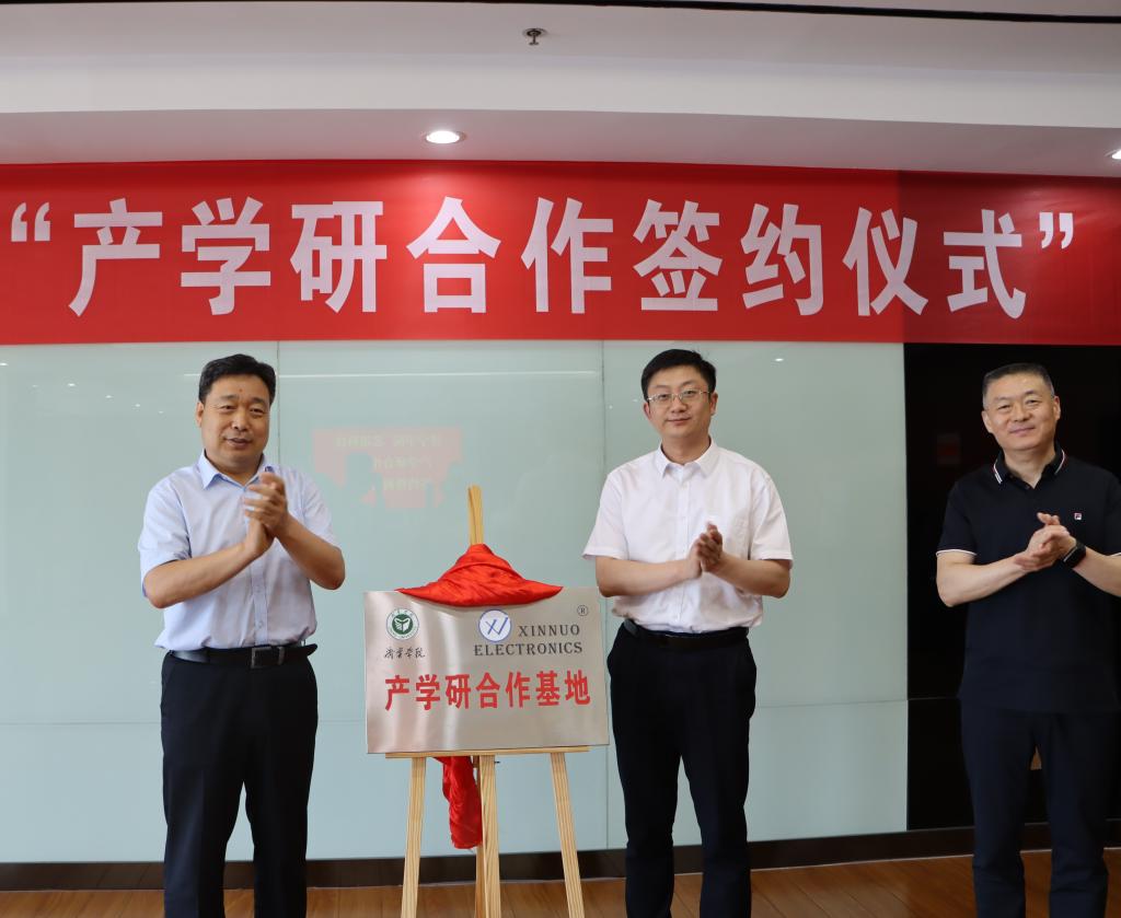 6月14日,我校与山东芯诺电子科技股份有限公司产学研合作签约暨揭牌仪式在该公司隆重举行。学校党委副书记、校长王清明,兖州区委书记王庆,山东芯诺电子科技股份有限公司董事长陈刚全出席活动。兖州区相关部门领导,学校科研处、合作发展办公室、物理科学与智能工程学院负责人以及山东芯诺电子科技股份有限公司相关负责人参加。仪式由兖州区委副书记苏振主持。