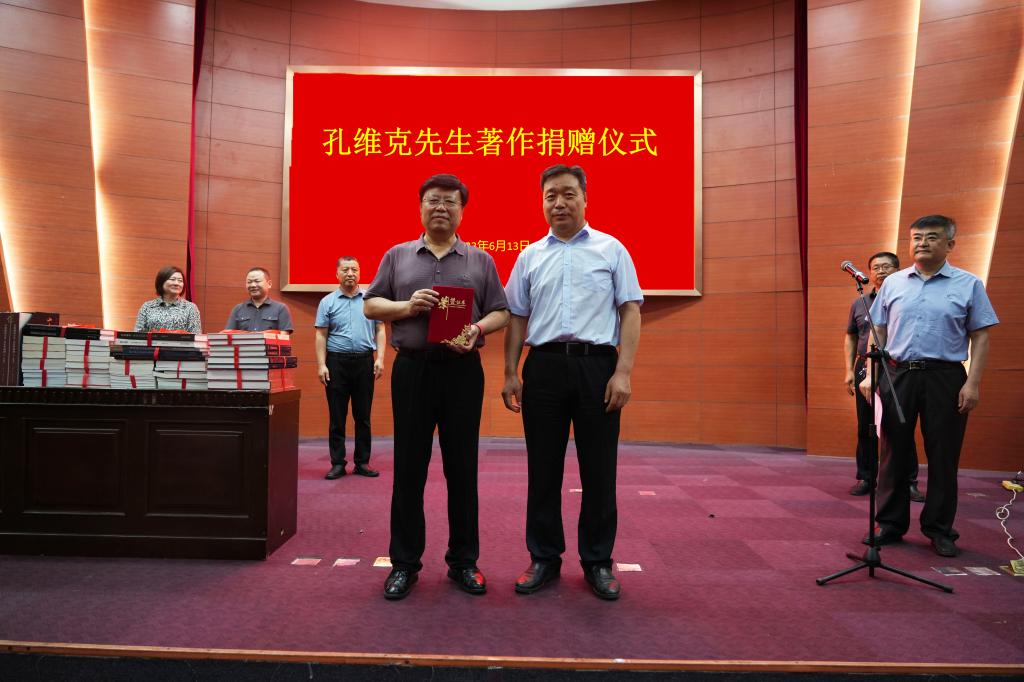 王清明对孔维克回母校交流和进行著作捐赠表示欢迎和感谢,并代表学校为孔维克颁发了捐赠证书。他强调,此次图书捐赠既是优秀校友对母校图书资源建设的倾情奉献,更是一种精神上的薪火相承,对推动济宁学院校园文化建设、培养学生的家国情怀、责任担当和提升师生的人文素养具有极大的促进作用。期望孔维克以这次回访为契机,为母校发展传授更多先进经验,对母校各项工作提供更多指导和帮助,促进母校更好更快发展。