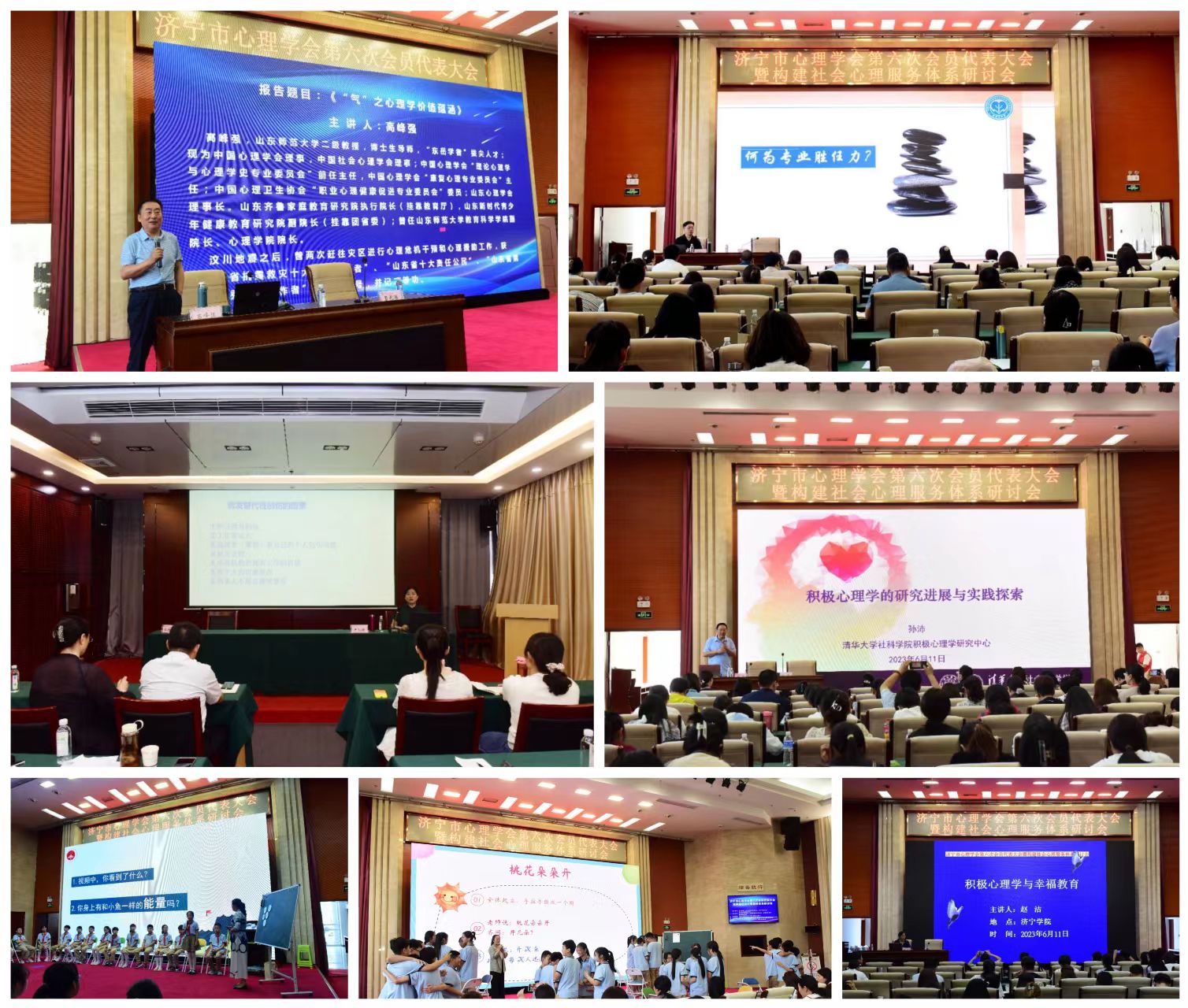 大会进行了学术交流与研讨。高峰强的学术报告《“气”之心理学价值蕴涵》,从中国哲学文化视角讲述了“气”的心理学价值,阐述了“气”与身心健康的关系,为探索心理健康教育、心理咨询的方式提供了新的思路;青岛市心理学会理事长、教授郑洪利的学术报告《基于胜任力模型的心理咨询师的专业成长》,阐述了成为咨询师的六个阶段、咨询师胜任力模型,为心理咨询师专业成长指明了方向与路径;中国人民公安大学警务心理研究与服务中心主任、教授王淑合的学术报告《警察心理压力及缓解对策》,为参会的公安民警、监狱干警阐释了心理压力的主要来源、心理压力对民警的影响及缓解压力的途径与方法;清华大学社科学院心理学系副教授、博导孙沛的学术报告《后疫情时代青少年心理健康保护和风险性因素的评估与网络分析》和《积极心理学研究进展与实践探索》,从疫情中普通民众和青少年心理健康状况的研究结论,引入积极心理学的研究进展及积极心理学在提升个人幸福感、建设幸福组织和幸福社区的实践探索;济宁学院教师胡从修和曲阜市东方学校心理健康教育中心主任谢文静分别进行了《拥抱青春期》及《我有抗挫力》的中小学心理健康教育观摩课。赵洁在大会总结中回应与会代表关切,介绍了积极心理学的使命及在教育领域的应用,积极教育的概念、目标、内容,济宁市心理学会将致力于积极教育与优秀传统文化的结合,创新中小学心理健康教育课程内容。