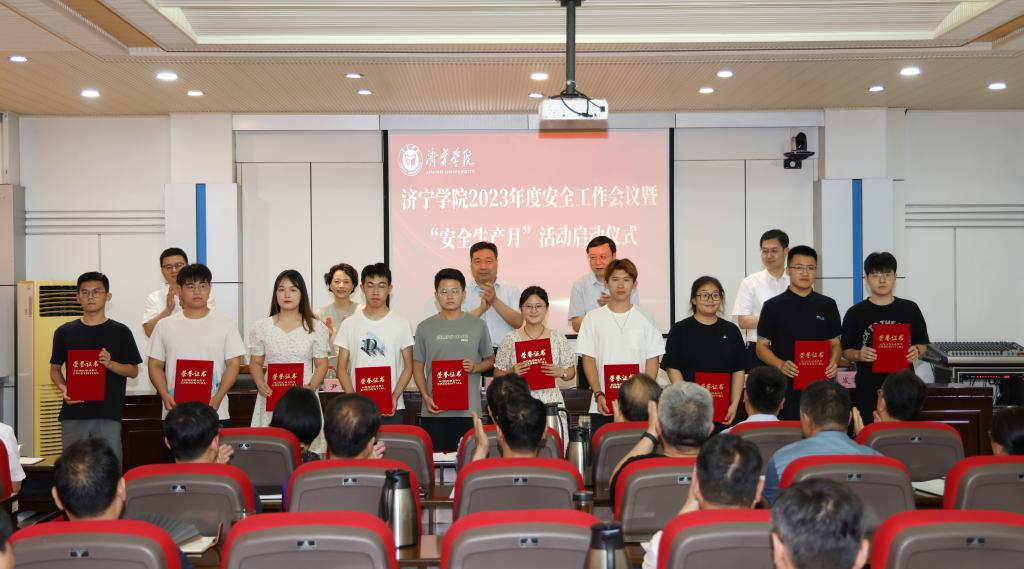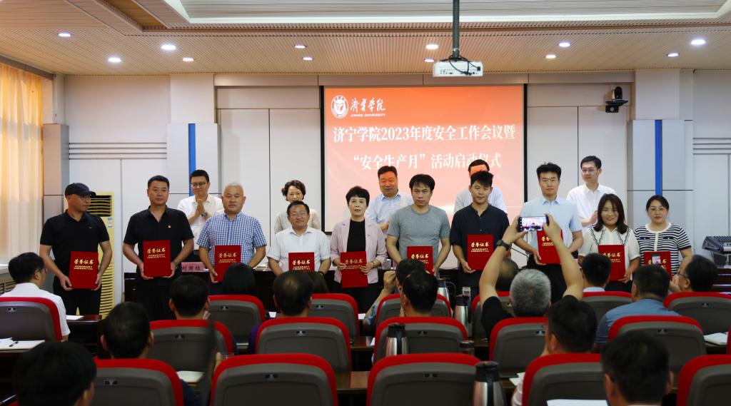 安全保卫处申建民同志传达全省学校安全工作视频会议精神和济宁学院2023年“安全生产月”活动方案。