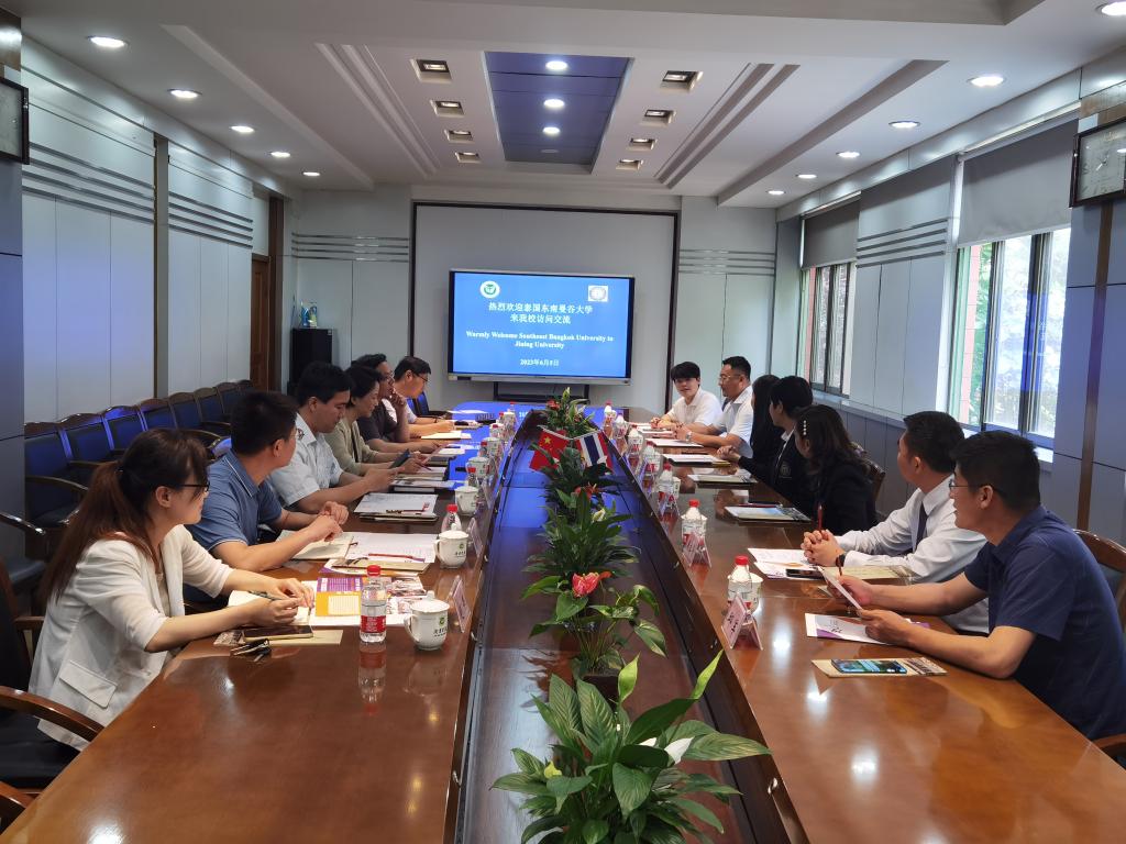 随后双方在二楼会议室进行座谈交流。校党委委员、副校长尹春光出席座谈会,国际教育学院、参加泰国东南曼谷大学硕士项目的教师代表陪同参加。尹春光指出自2020年底与东南曼谷大学正式建立友好合作关系以来,两校一直保持着密切联系,并开展了富有成效的合作,希望通过此次交流,进一步拓展我们两校的合作空间。泰国东南曼谷大学执行校长Pattarada Rungraung女士介绍了泰国东南曼谷大学的基本概况,并对两校未来的合作充满期待。随后双方就交换生项目,师生海外学历项目进行了深入交流。我校参与东南曼谷大学硕士项目的教师代表也分享了学习心得和收获。