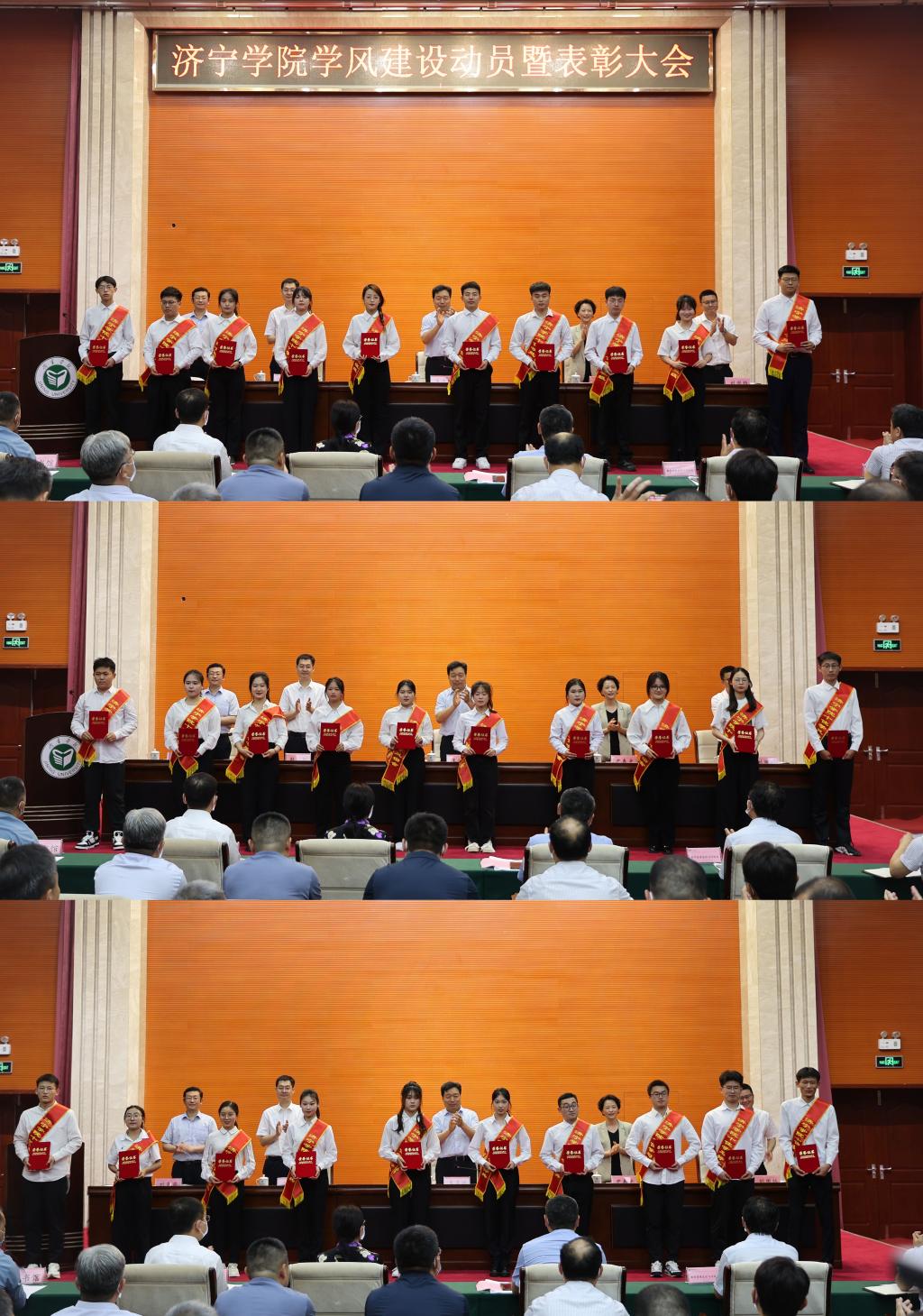 大会总结表彰了我校2023年在学风建设工作中涌现出的先进集体和先进个人,尹春光宣读了表彰决定,与会领导为获奖集体和个人代表颁奖。“十佳学风班级”代表工程学院2019级安全工程专业1班的朱骞、“十佳学风宿舍”代表马克思主义学院新7号公寓楼A座321宿舍的周方洁、“十佳学习标兵”代表儒商学院的和树钰作了交流发言。