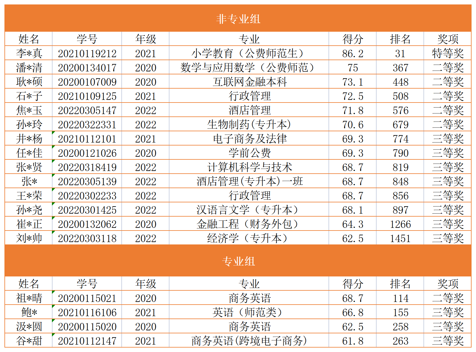 2023年“外教社·词达人杯”全国大学生英语能力大赛山东省总决赛落下帷幕,我校共有专业组4人,非专业组14人获得省级奖项。其中2021级小学教育(公费师范生)李梦真荣获特等奖,成功晋级国赛。