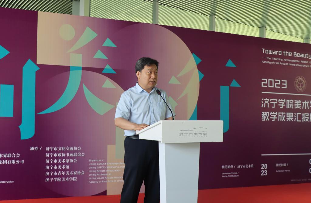 王清明在致辞中指出,济宁学院始终把美育作为落实立德树人根本任务的关键一环,以“大美”涵润“大德”、成其“大人”,夯实“培根铸魂”工作,下一步将充分利用优秀传统文化资源,挖掘和运用蕴含其中的民族审美特质,发挥专业和人才优势,深入开展文化艺术交流和教学实践,为助推济宁市教育事业和社会发展贡献新的更大力量。