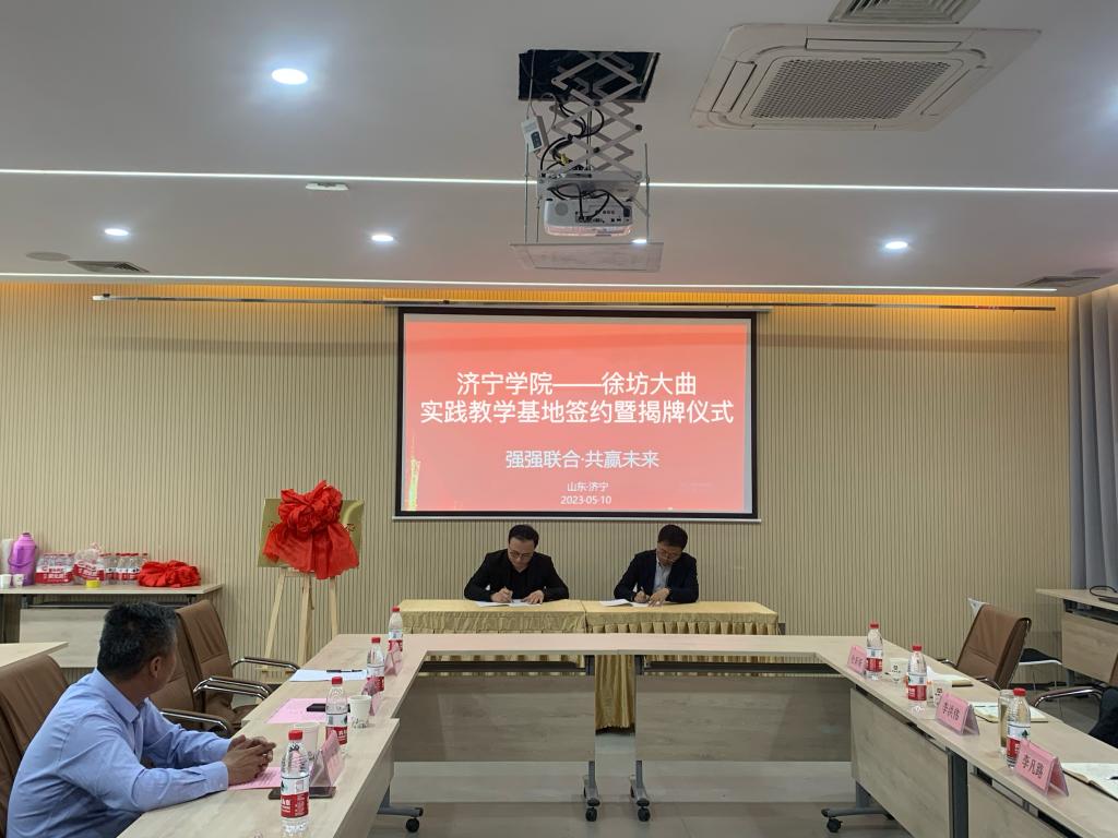 活动最后,赵强与山东梁山徐坊大曲有限公司总经理徐伟共同就“济宁学院-徐坊大曲实践教学基地”进行签约。李凡路与张兆勇共同为“济宁学院-徐坊大曲实践教学基地”进行揭牌。