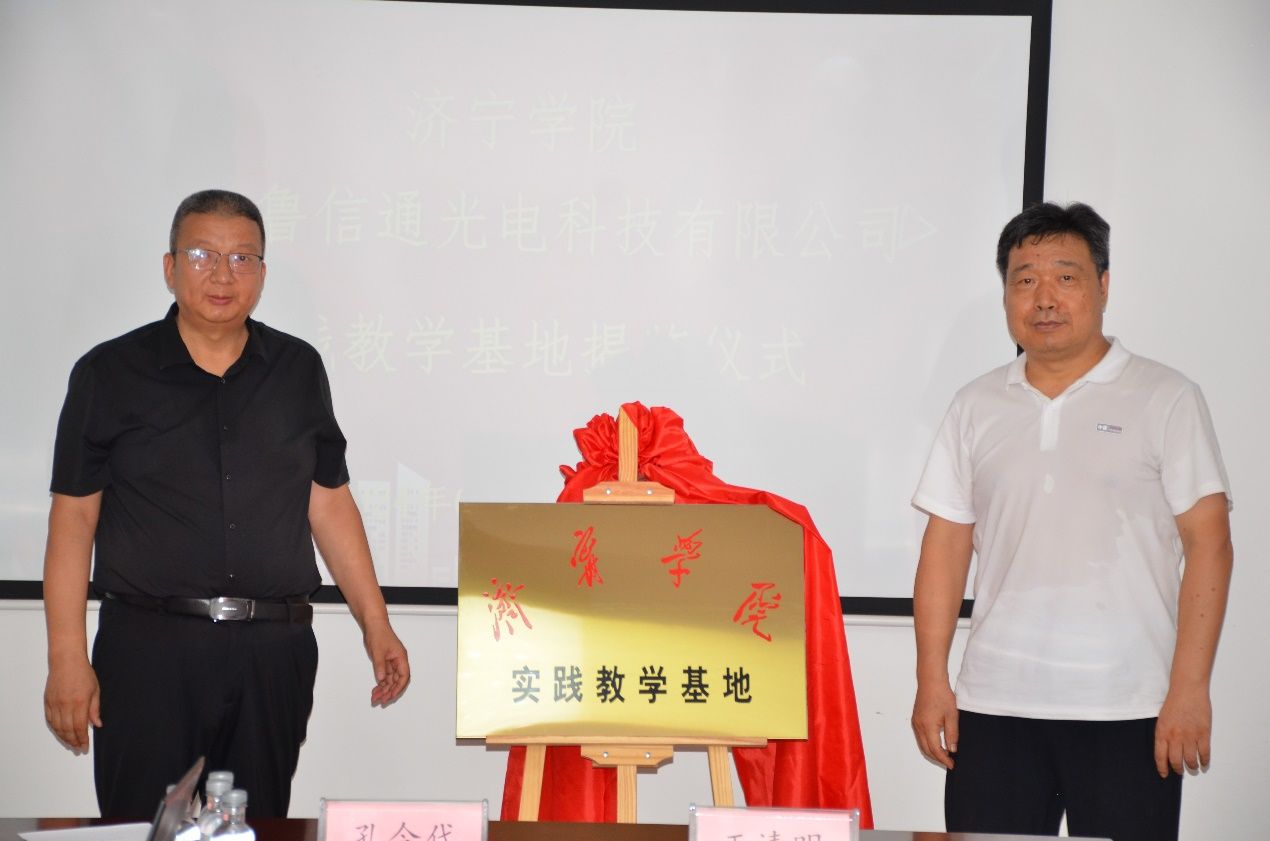 8月2日下午,济宁学院党委副书记、校长王清明带队赴山东鲁信通光电科技有限公司考察调研并举行了“济宁学院——山东鲁信通光电科技有限公司”产学研合作签约暨实践教学基地、大学生社会实践基地、大学生创新创业见习基地揭牌仪式。山东鲁信通光电科技有限公司总经理孔令代等陪同王清明一行参观了企业并举行座谈。学校合作发展办公室、团委、教务处、科研处、物理与电子工程学院、机电工程学院负责人、教师代表和山东鲁信通光电科技有限公司相关部门负责人参加了仪式。