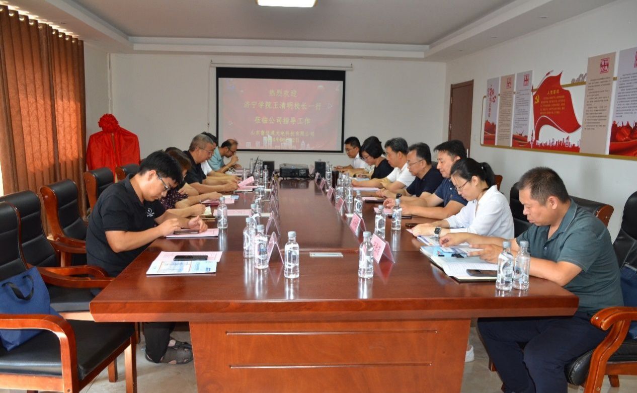 与会人员共同参观了山东鲁信通光电科技有限公司的办公环境、生产车间和实验室,并举行了产学研合作座谈会,卫建勋、张静、史继军、师艳秋、高尚君、张长茂等分别就大学生创新创业、校企合作课程开发、项目合作、大学生实习、见习、公司人员能力提升培训等方面进行了深入的交流。