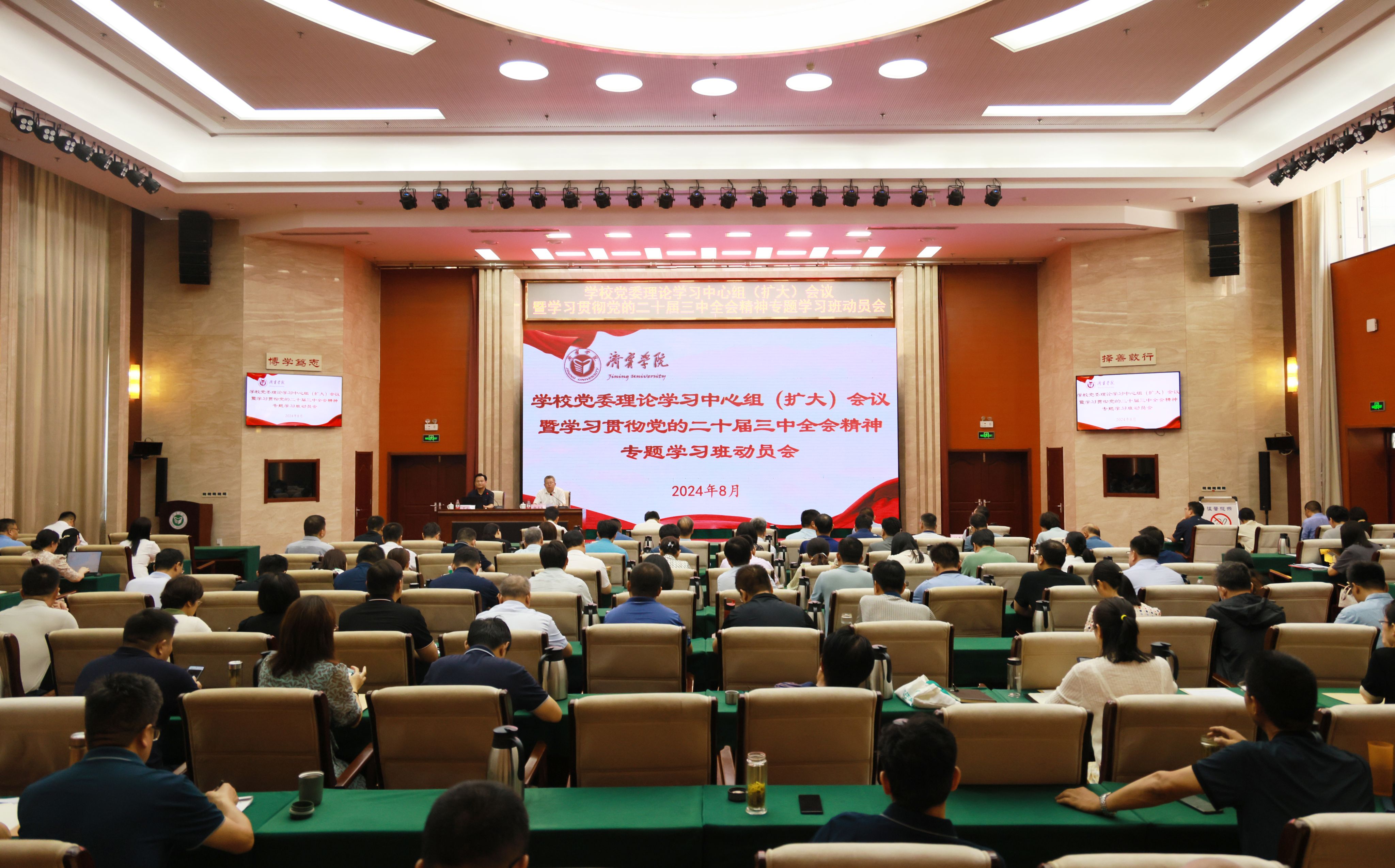 8月3日,学校召开党委理论学习中心组(扩大)会议暨学习贯彻党的二十届三中全会精神专题学习班动员会。山东省委党校(山东行政学院)研究生院院长丁兆庆教授应邀作了党的二十届三中全会精神专题辅导报告。校党委书记杨天梅主持并作动员讲话。
