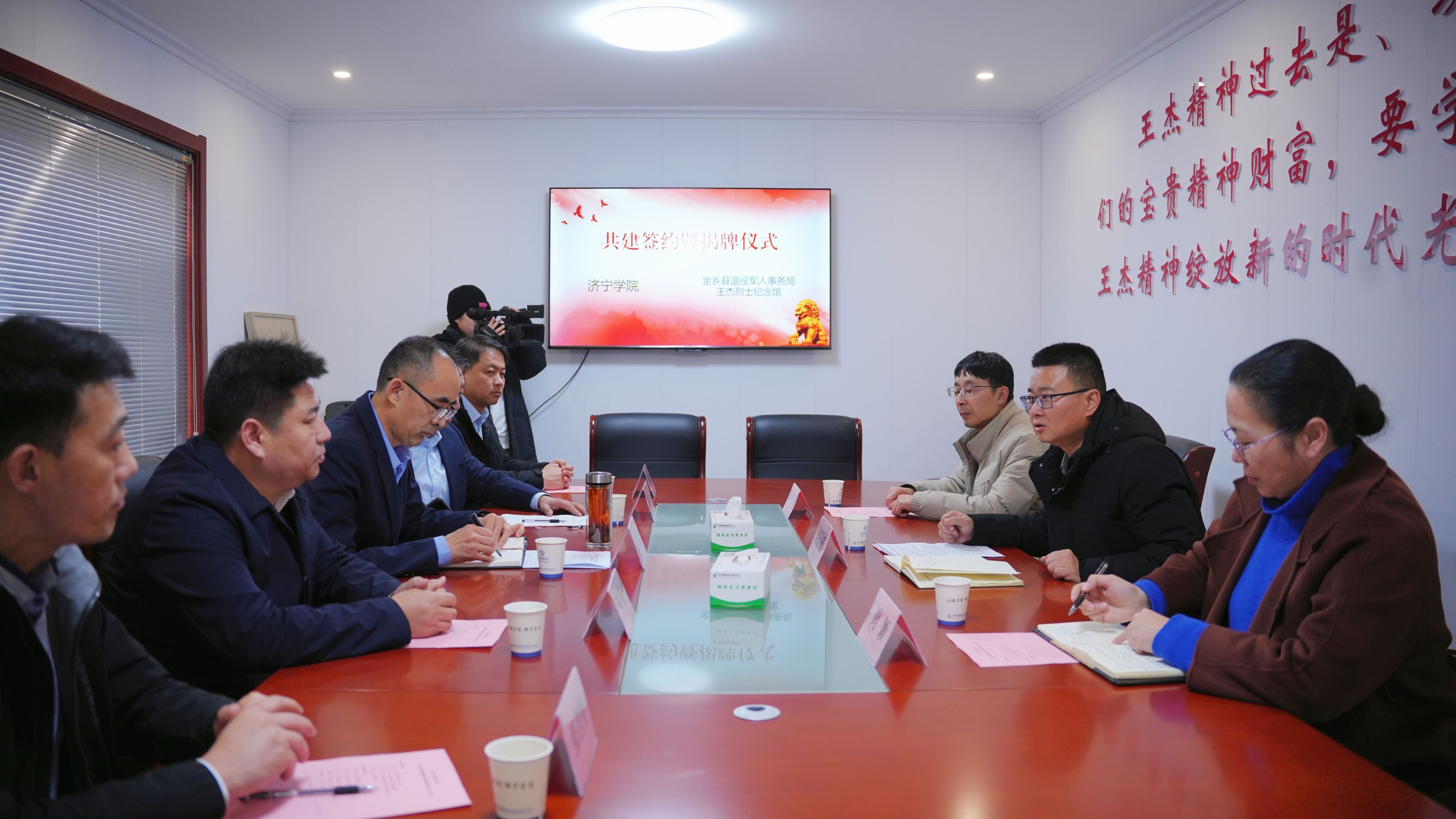 2月21日下午,学校与金乡县退役军人事务局、王杰烈士纪念馆共建“济宁学院退役军人教育培训实践教学基地”,签约挂牌仪式在王杰烈士纪念馆举行。我校副校长刘国栋,金乡县副县长、县公安局局长李巍出席仪式并为实践教学基地揭牌。金乡县退役军人事务局党组书记、局长王志辉,鱼山街道党工委书记孙凯,王杰烈士纪念设施保护中心主任江明灿,王杰烈士纪念馆馆长张君伟、我校教育培训学院副院长周颖及相关人员参加活动。