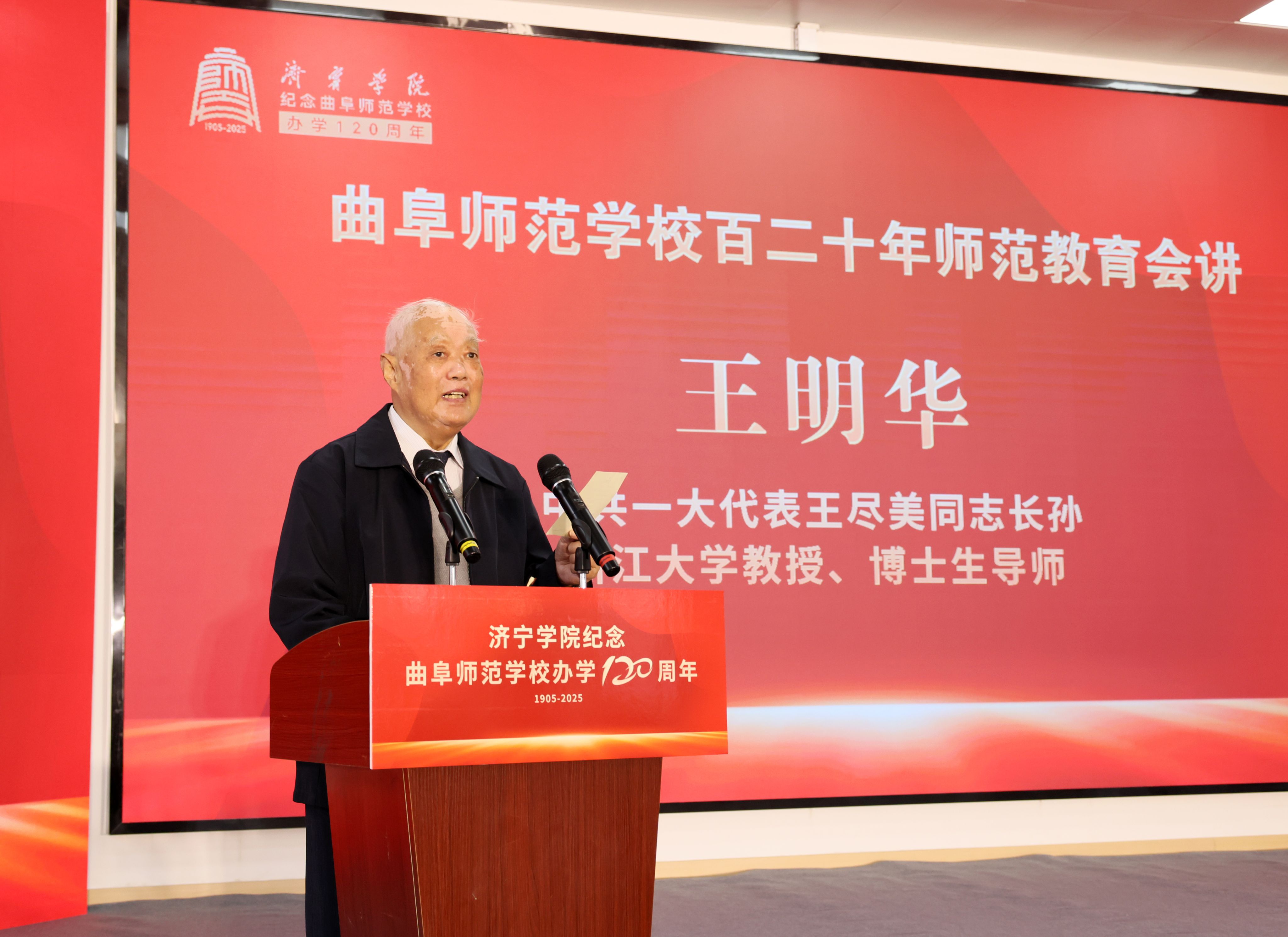 王清明致欢迎辞。他代表济宁学院全体师生对各级领导、嘉宾、校友的到来表示热烈欢迎,并对长期以来关心和支持学校发展的社会各界人士表示衷心感谢。他回顾了曲阜师范学校办学120年的发展历程,学校始终秉承“博学笃志 择善敦行”的校训精神,在教育的道路上砥砺前行,以培养优秀师资、培育栋梁之才为己任,积极服务地方经济社会发展。他指出,学校将以纪念曲阜师范学校办学120周年活动为起点,继续坚持立德树人根本任务,传承师范薪火,赓续红色血脉,深化教育教学改革,推进红色文化和儒家文化融合育人,着力打造具有鲜明特色和影响力的教育品牌,努力培养更多担当民族复兴大任的时代新人,为教育强国建设贡献更多智慧和力量。