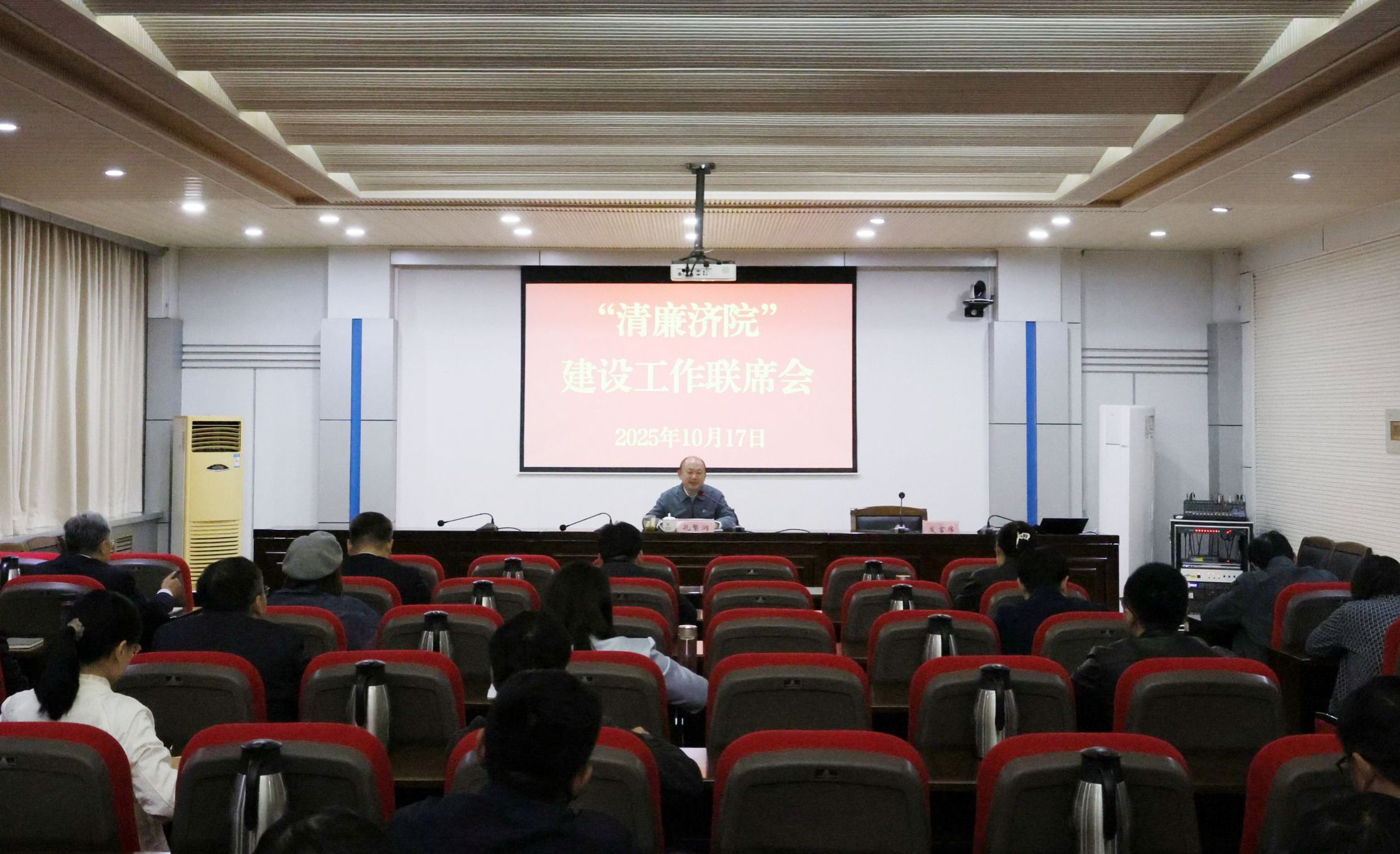 10月17日上午,学校在行政楼C301会议室召开“清廉济院”建设工作联席会。校党委委员、纪委书记、监察专员孔繁润出席会议并讲话,各基层党委书记、二级学院党委副书记、相关部门主要负责人参加会议。