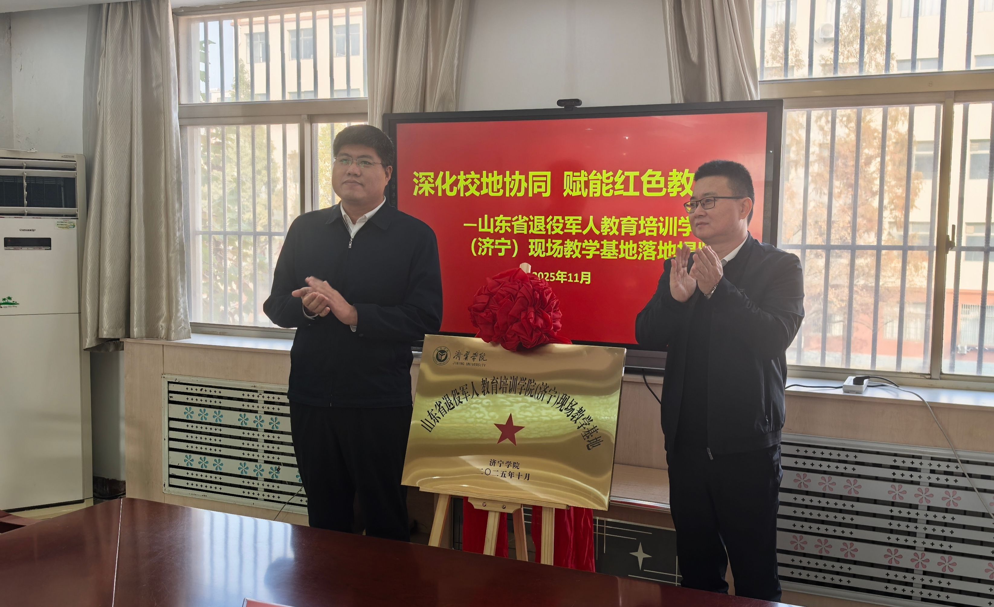 刘国栋在致辞中指出,济宁学院扎根济宁大地办大学,主动适应行业和区域经济社会发展需求,依托师范教育优势,陆续举办了济宁市退役军人教师职业能力培训、在职兵教师素质能力提升培训、自主就业退役士兵适应性培训、自主择业军队转业干部素质能力提升培训、山东省两期退役士兵教师资格技能培训等培训,服务区域经济社会发展。他希望,双方以“山东省退役军人教育培训学院(济宁)现场教学基地”揭牌为契机,深化在红色课程联合开发、优质师资共享、实践活动共建等方面的合作,协同推进基地建设与退役军人培训工作,为退役军人赋能发展提供有力支撑,助力提升退役军人综合素质与就业创业能力,共同谱写校地合作、军民融合、教育创新的新篇章。