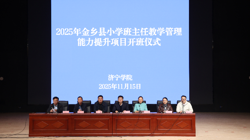 11月15日上午,2025年金乡县小学班主任教学管理能力提升项目开班仪式在济宁学院隆重举行。来自金乡县各小学的120名骨干教师齐聚我校,开启2+0.5*4模式培训学习。学校党委委员、副校长赵明,金乡县委教育工委副书记、县教体局党组副书记李淑慧出席开班仪式并讲话。