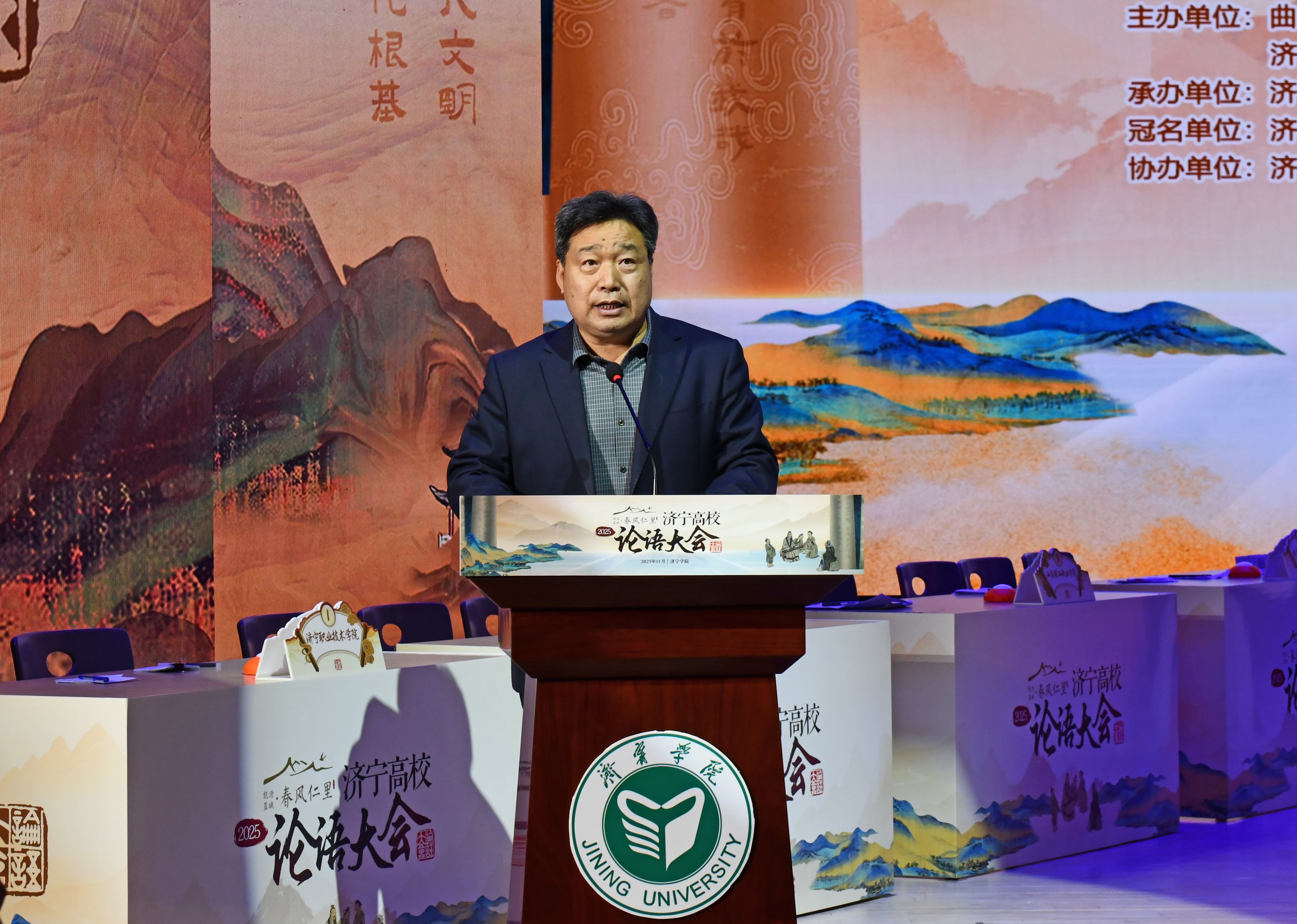 济宁学院党委副书记、校长王清明在致辞中表示,作为地处孔子故里的高等院校,济宁学院始终坚持以“弘扬儒家文化、培育时代新人”为己任。近年来,学校依托地域优势和文化资源,持续推进中华优秀传统文化“两创”实践,打造了一系列具有影响力的学术平台和文化品牌。《论语大会》这档发轫于济宁学院的大型益智文化赛事历经多年突破创新,已积淀成追求卓越、争创一流的鲜明特质。赛事自创办以来,以其深厚的文化底蕴、严谨的赛制设计和广泛的参与度,已成为全省乃至全国高校中颇具影响力的文化盛事。