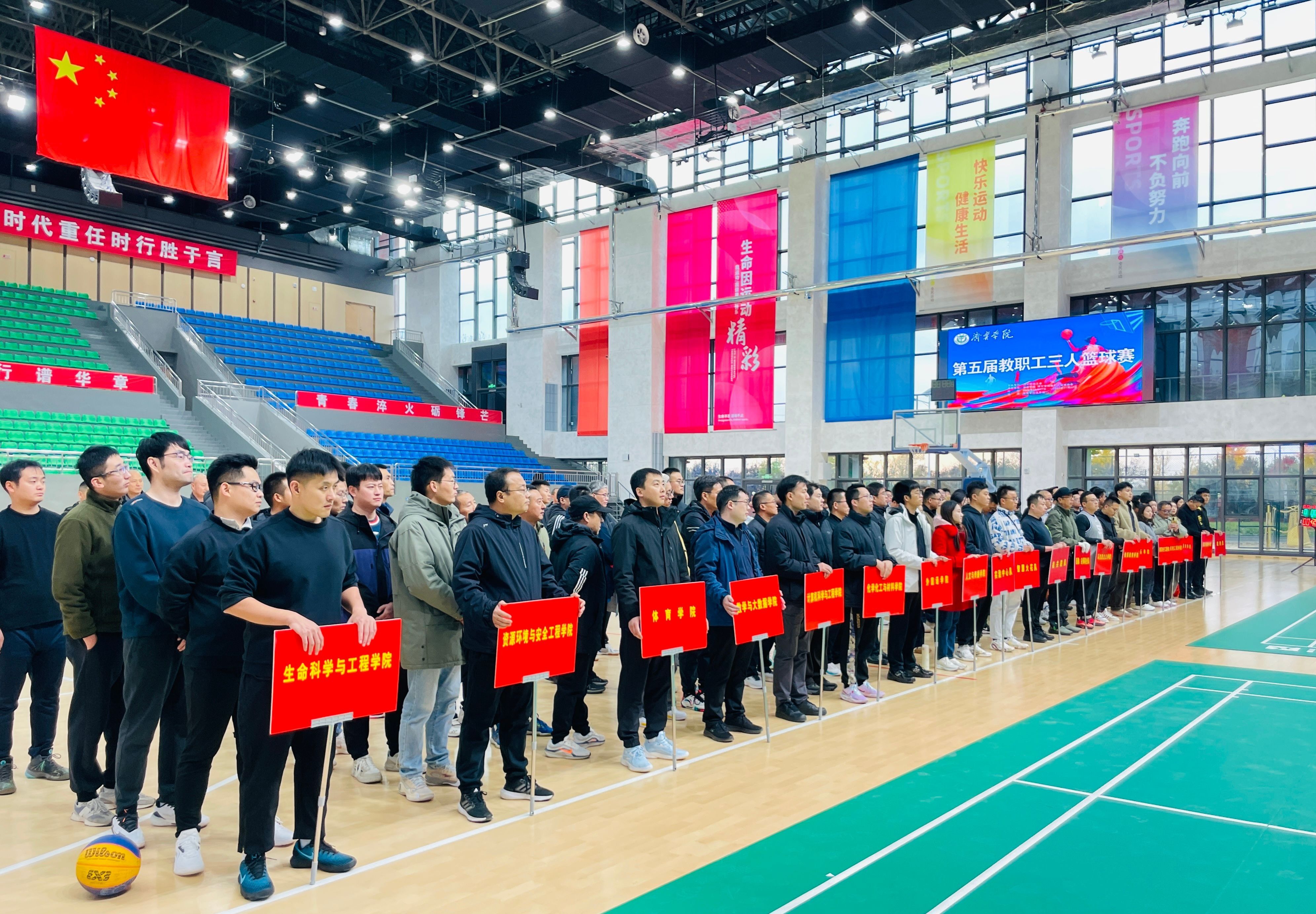 本次赛事于11月17日开幕,校长王清明出席开幕式并为比赛开球。赛事得到全校教职工的积极响应与广泛参与,共有25支代表队、212名运动员同台竞技,赛场之上亮点纷呈。参赛教职工们秉持“友谊第一,比赛第二” 的体育精神,化身活力满满的运动健儿,以饱满的热情、昂扬的斗志投入每一场赛事。巧妙默契的团队传球、精准果断的远投得分、迅捷利落的抢断反击、坚韧顽强的卡位防守,每一个精彩瞬间都展现出教职工们精湛的运动技艺与协作共赢的团队风采,现场观众的欢呼声、加油声此起彼伏,充分彰显了“活力济园、健康济园”的校园氛围。