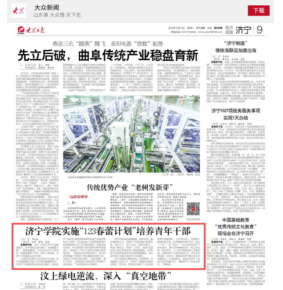 为进一步提升青年干部素质能力,济宁学院启动实施了“123春蕾计划”,聚焦高素质、专业化的青年干部培养,积极搭建两个平台,落实三项举措,为青年干部搭建成长快车道。