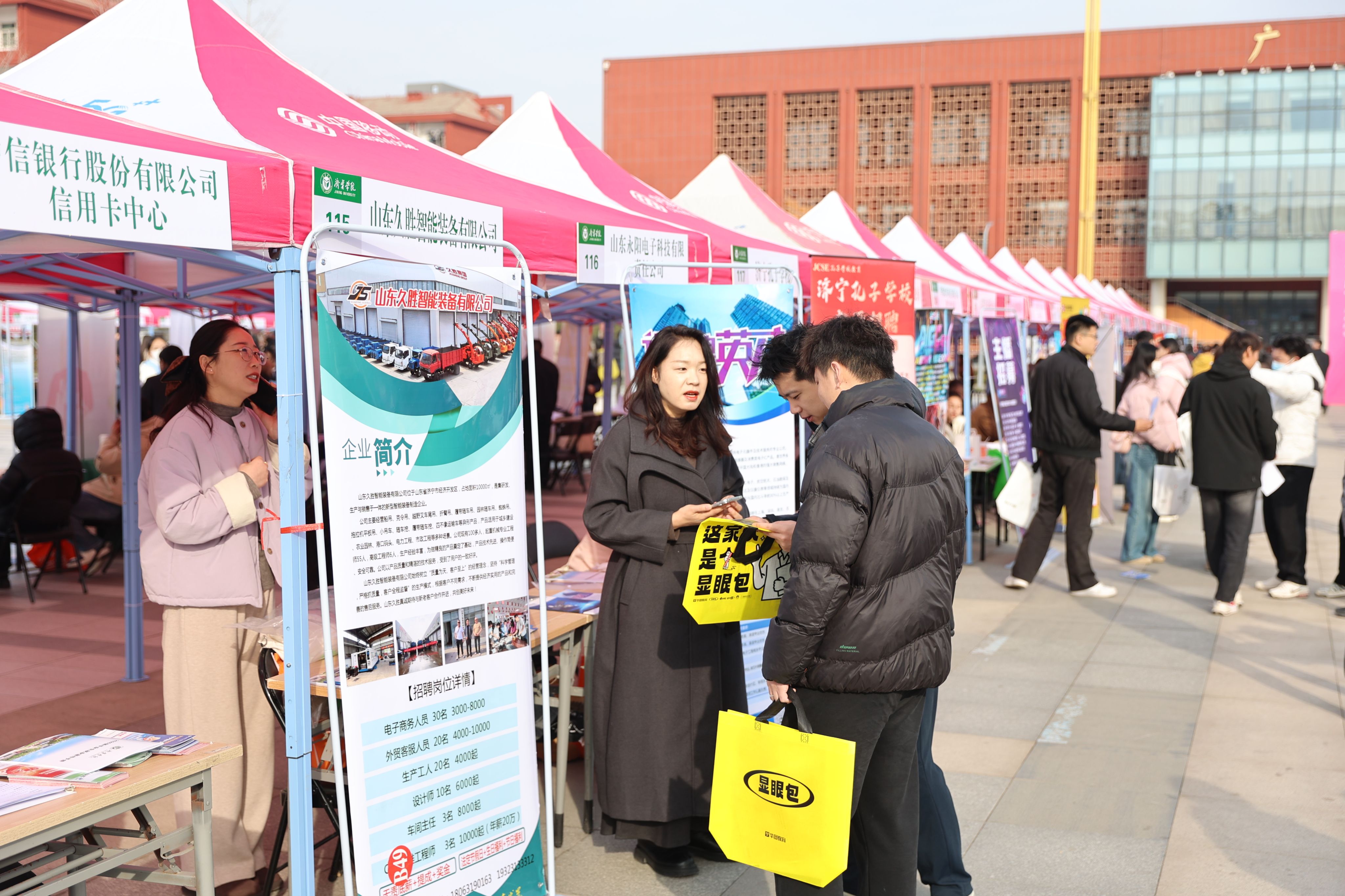 12月10日上午,由山东省人力资源和社会保障厅、山东省教育厅主办,我校与济宁市人力资源和社会保障局承办的“就选山东”鲁南经济圈综合类专场暨济宁学院2026届毕业生“暖冬就业行动”双选会在学校餐厅广场顺利举行。校党委副书记、校长王清明,党委委员、副校长赵明亲临现场调研指导,并与用人单位及毕业生亲切交流。