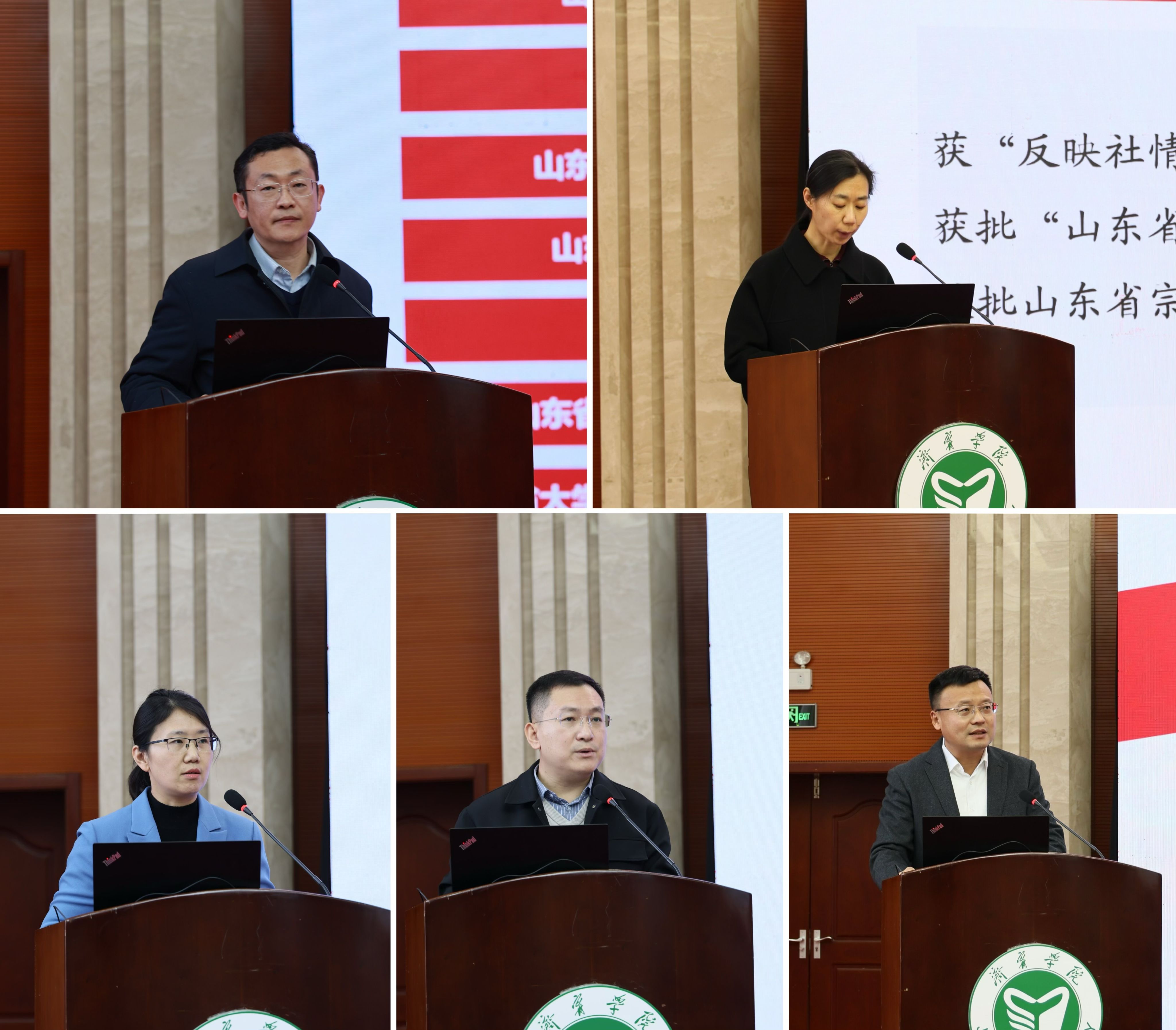 仲红波、王清明等校领导对每项汇报都进行了点评。校领导指出,“十四五”期间学校在学科建设、人才培养、科学研究、师资队伍、文化建设、服务地方、国际交流、特色培育等方面都取得了长足进步。学校获批山东省应用型本科高校建设支持单位、山东省硕士学位授予精准培育单位,这为“十五五”时期高质量发展奠定了坚实基础。各部门单位调研工作要全面聚焦党的二十届四中全会精神、教育强国战略部署、兄弟高校先进办学经验和省属高校高质量考核要求,以攻坚克难的担当精神和争先创优的坚定信心,科学确定“十五五”发展目标和工作措施,全面推动学校高质量发展。