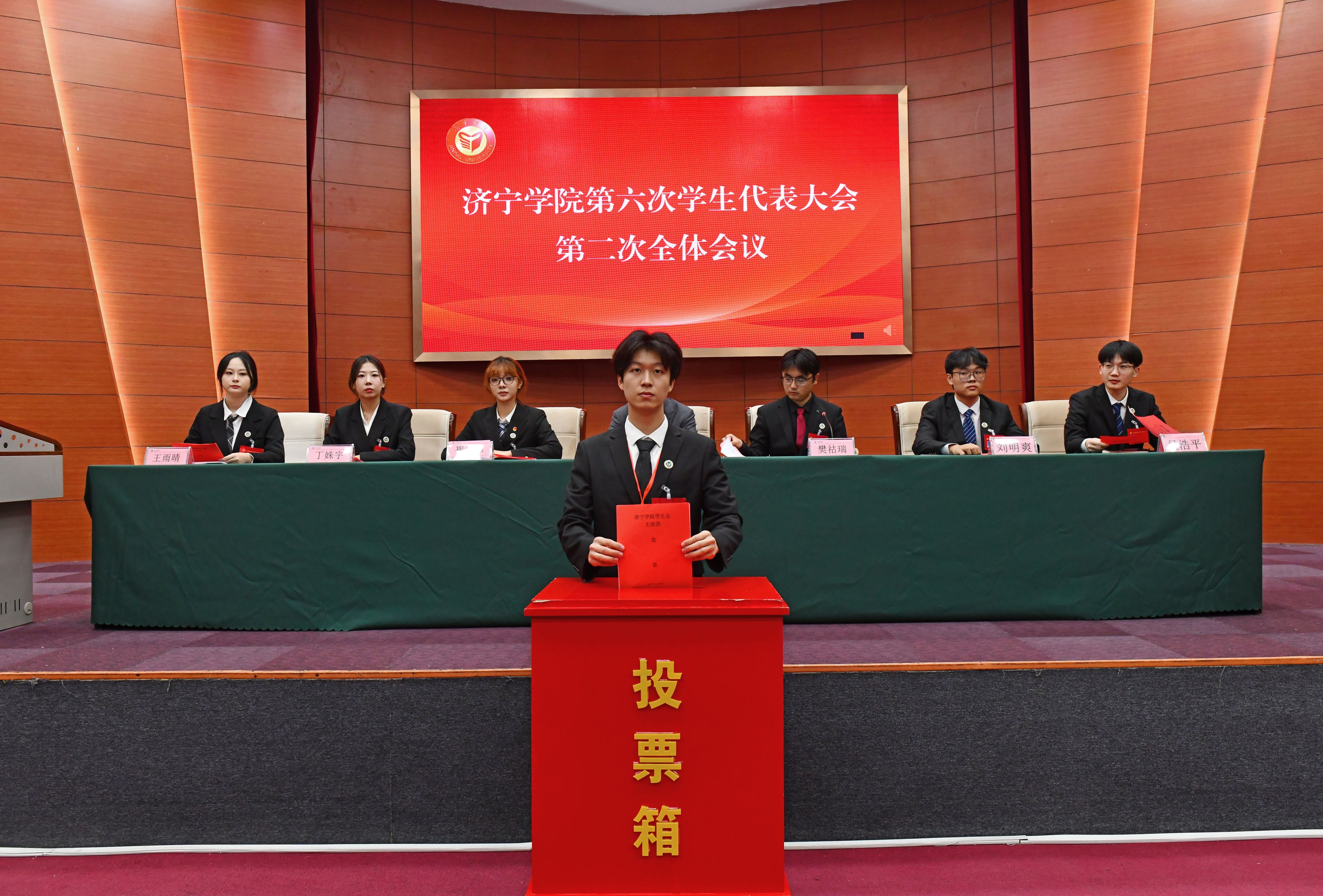 曲阜师范大学学生会主席团成员侯雅琳代表兄弟院校向大会召开表示祝贺。大会审议并通过了济宁学院第五届学生会工作报告,选举产生了新一届学生会主席团和学生代表大会常任代表。