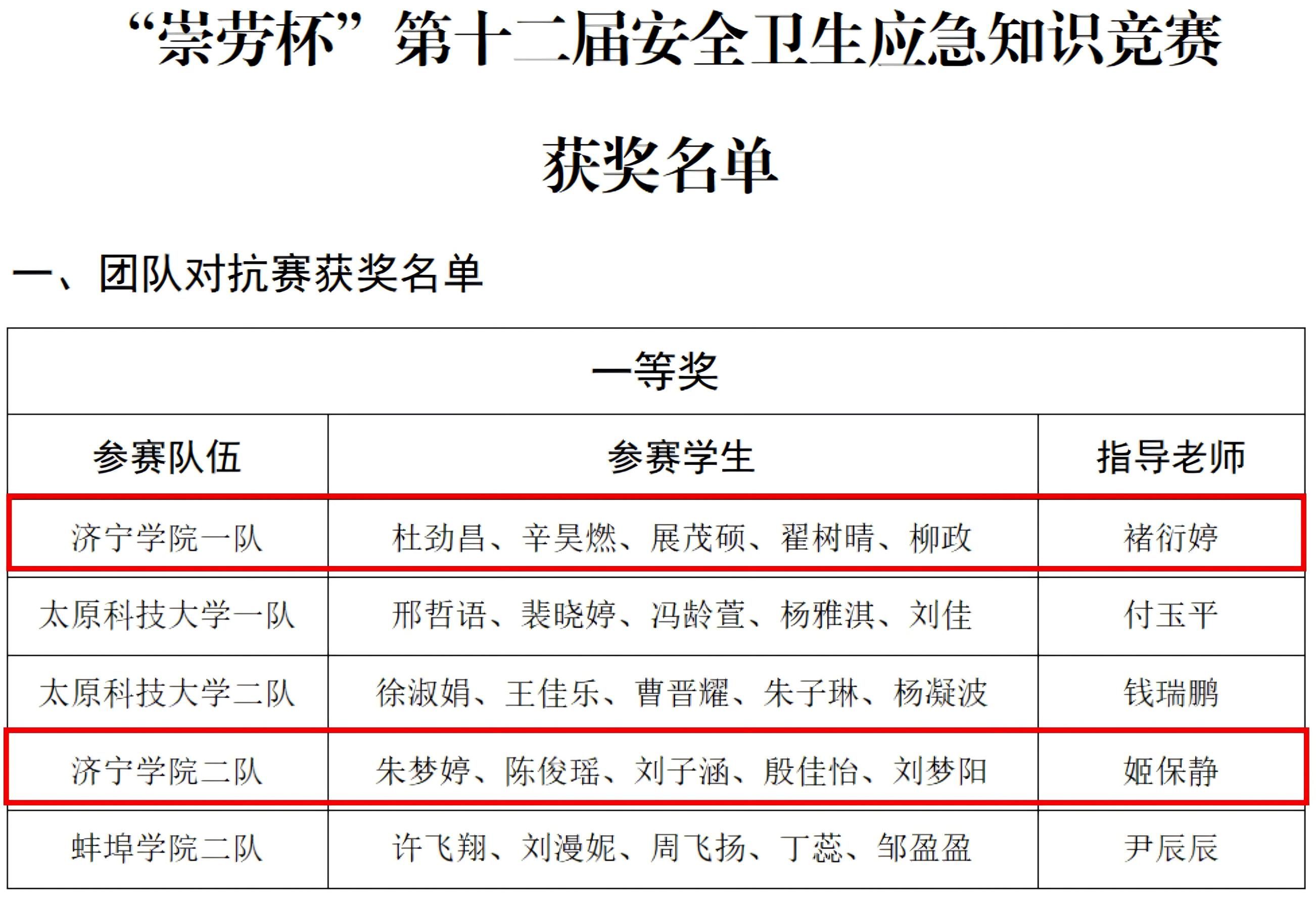 近日,由全国应急技术与管理本科专业高校联盟主办的“崇劳杯”第十届安全卫生应急知识竞赛圆满落幕。我校资源环境与安全工程学院学生在比赛中表现优异,荣获团队对抗赛一等奖2项,个人二等奖1项,个人三等奖3项,并获评“优秀指导教师”称号。