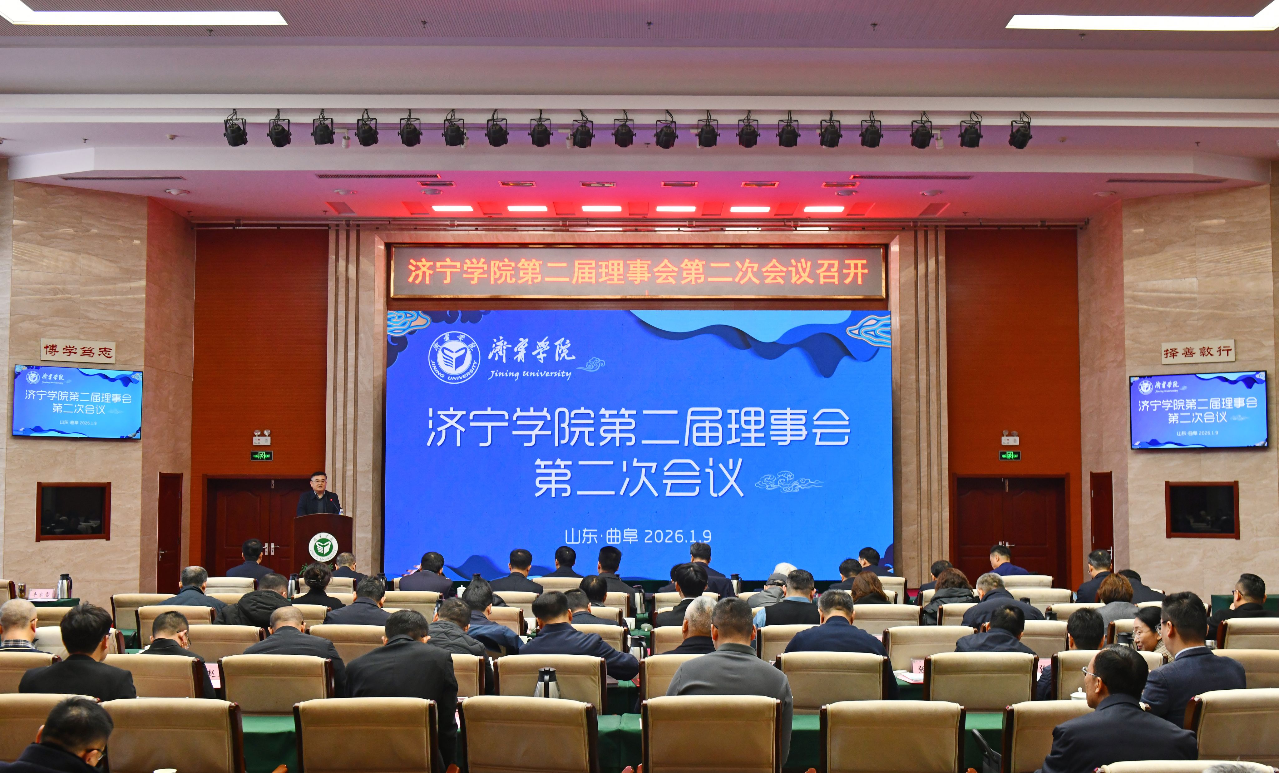 1月9日上午,我校第二届理事会第二次会议在科技楼学术报告厅召开。济宁学院党委副书记、校长、常务副理事长王清明出席会议并报告理事会工作。学校领导班子成员、理事代表、特邀嘉宾、校友以及相关部门、二级学院负责人参加大会。会议由党委副书记丰家雷主持。