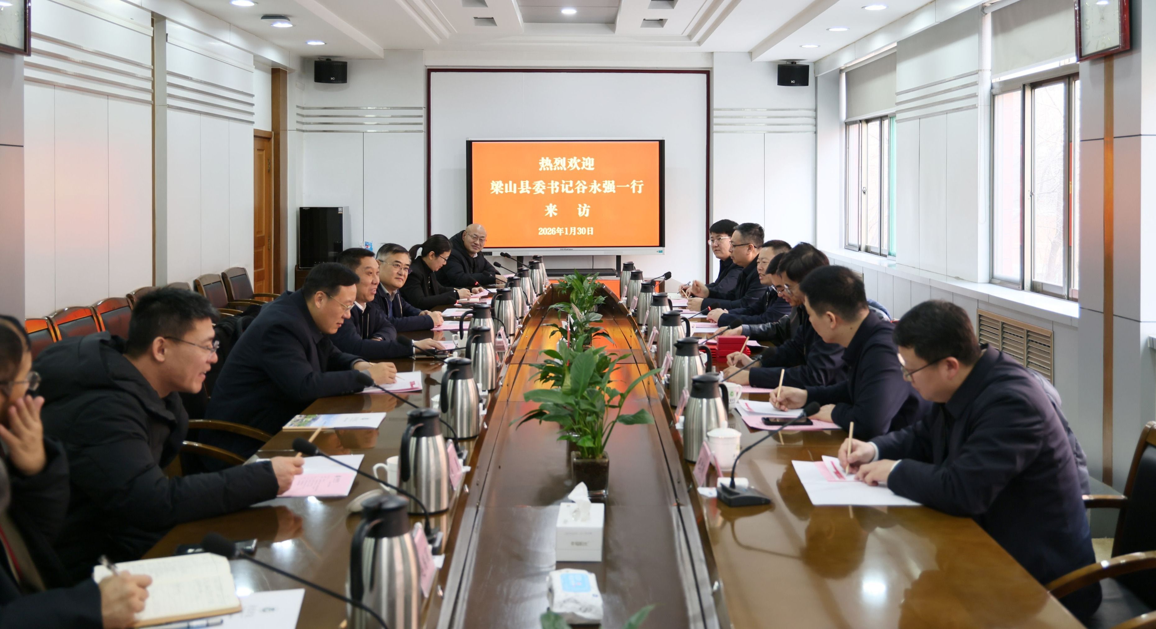 1月30日上午,梁山县委书记谷永强一行7人来学校调研交流“第一书记”工作。校党委书记仲红波,党委副书记丰家雷出席座谈会。会议由校党委委员、副校长李凡路主持,办公室、组织部、教务处、教师教育学院、四位“第一书记”参加座谈。