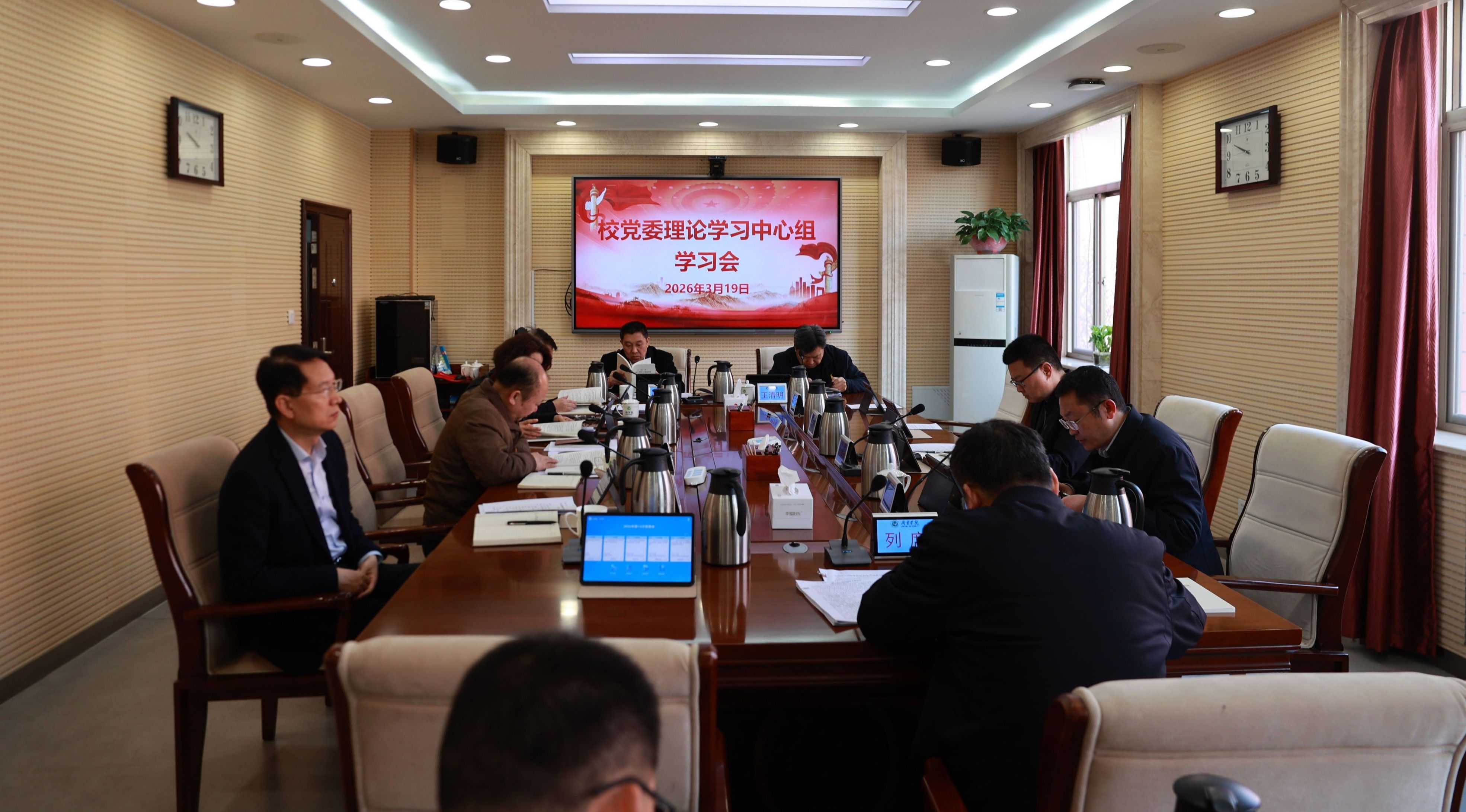 3月19日上午,学校党委理论学习中心组举行学习会,专题学习《习近平关于树立和践行正确政绩观论述摘编》。校党委书记仲红波主持会议并讲话。