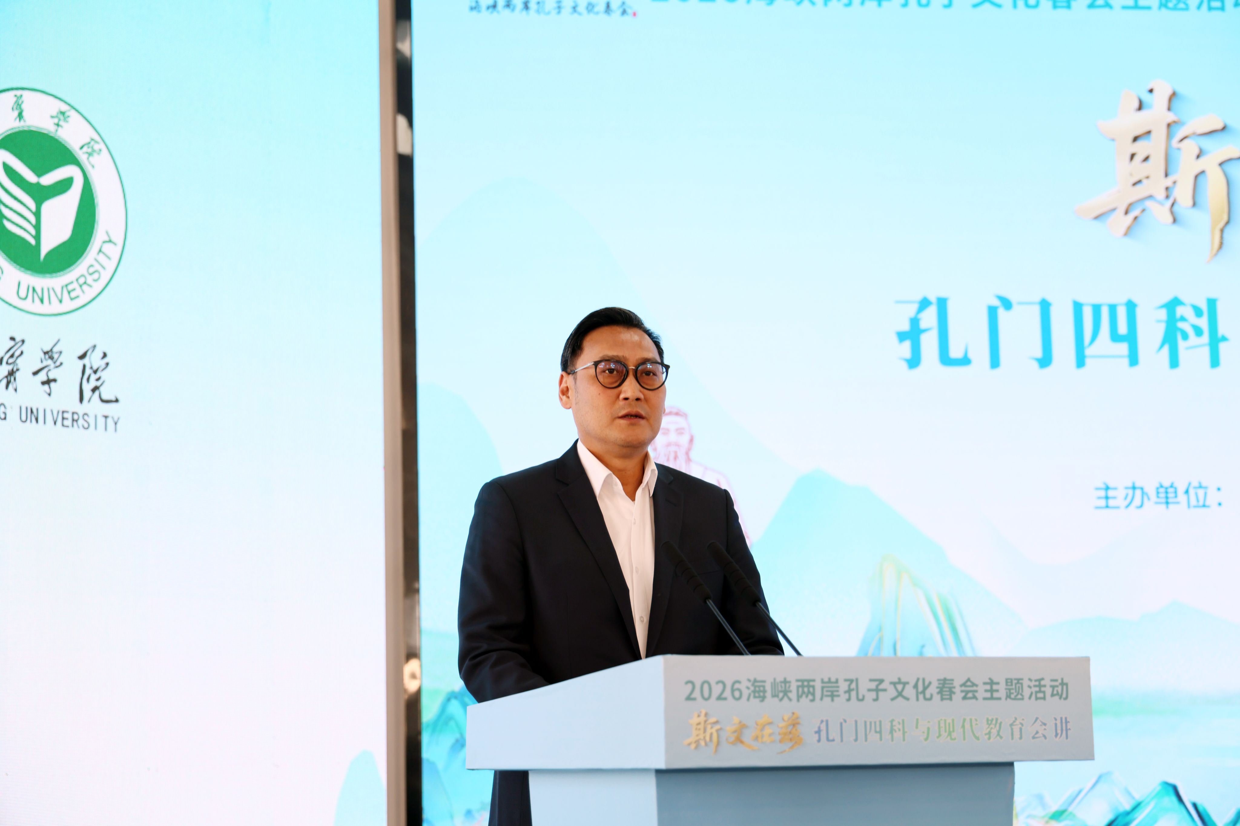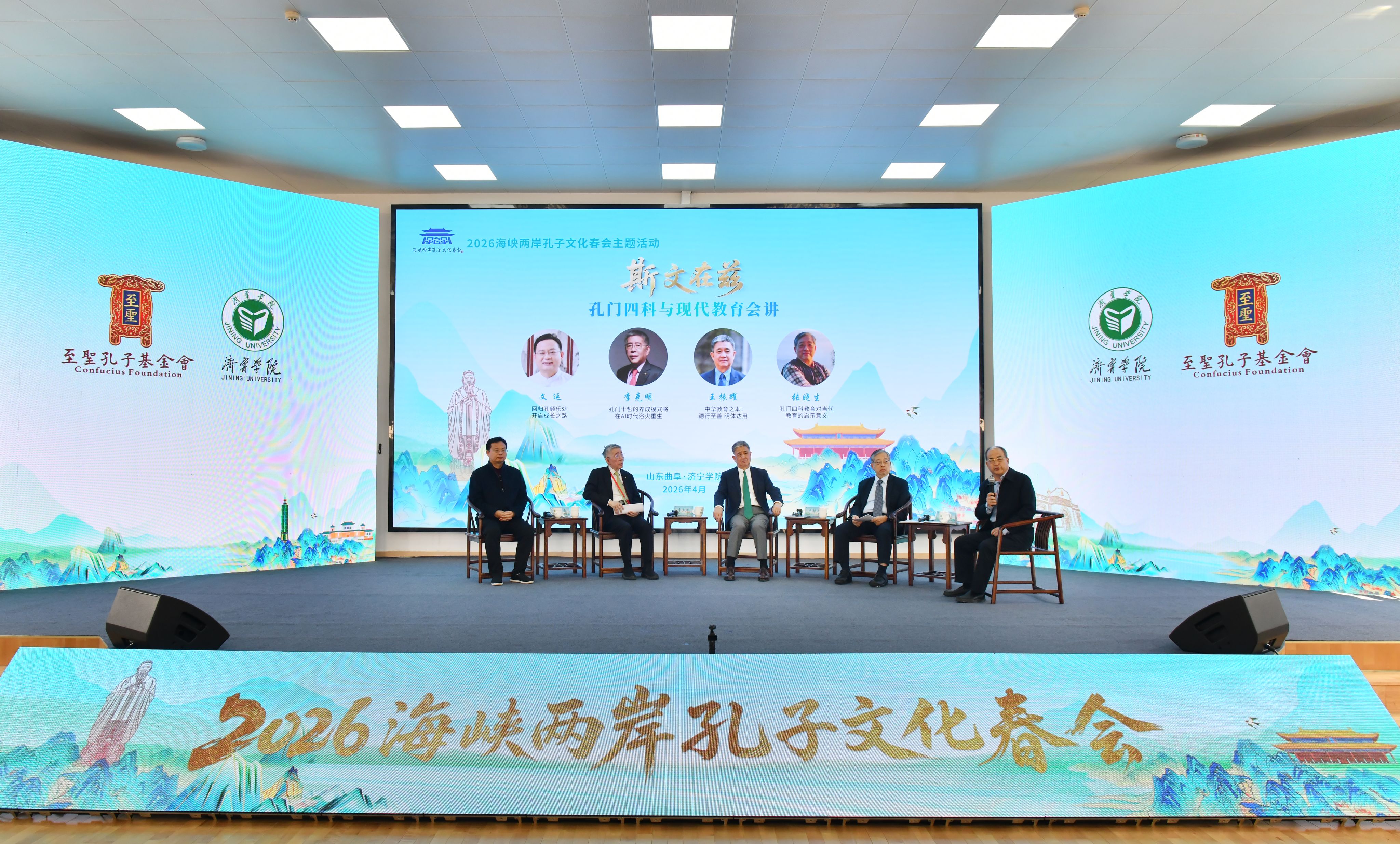 4月1日上午,2026海峡两岸孔子文化春会主题活动——“斯文在兹”孔门四科与现代教育会讲在我校隆重举行。孔子第79代嫡长孙、至圣孔子基金会会长、济宁学院名誉校长孔垂长,山东省委常委邓云锋,济宁市委副书记、市长张海波,济宁市委常委、政法委书记白平和,省委台湾工作办公室副主任吴莹,济宁学院党委书记仲红波,校领导赵明、孔繁润、张永强、刘克非及台湾专家、学者出席活动,共享传统文化与现代教育交融的思想盛宴。活动由学校党委副书记丰家雷主持。