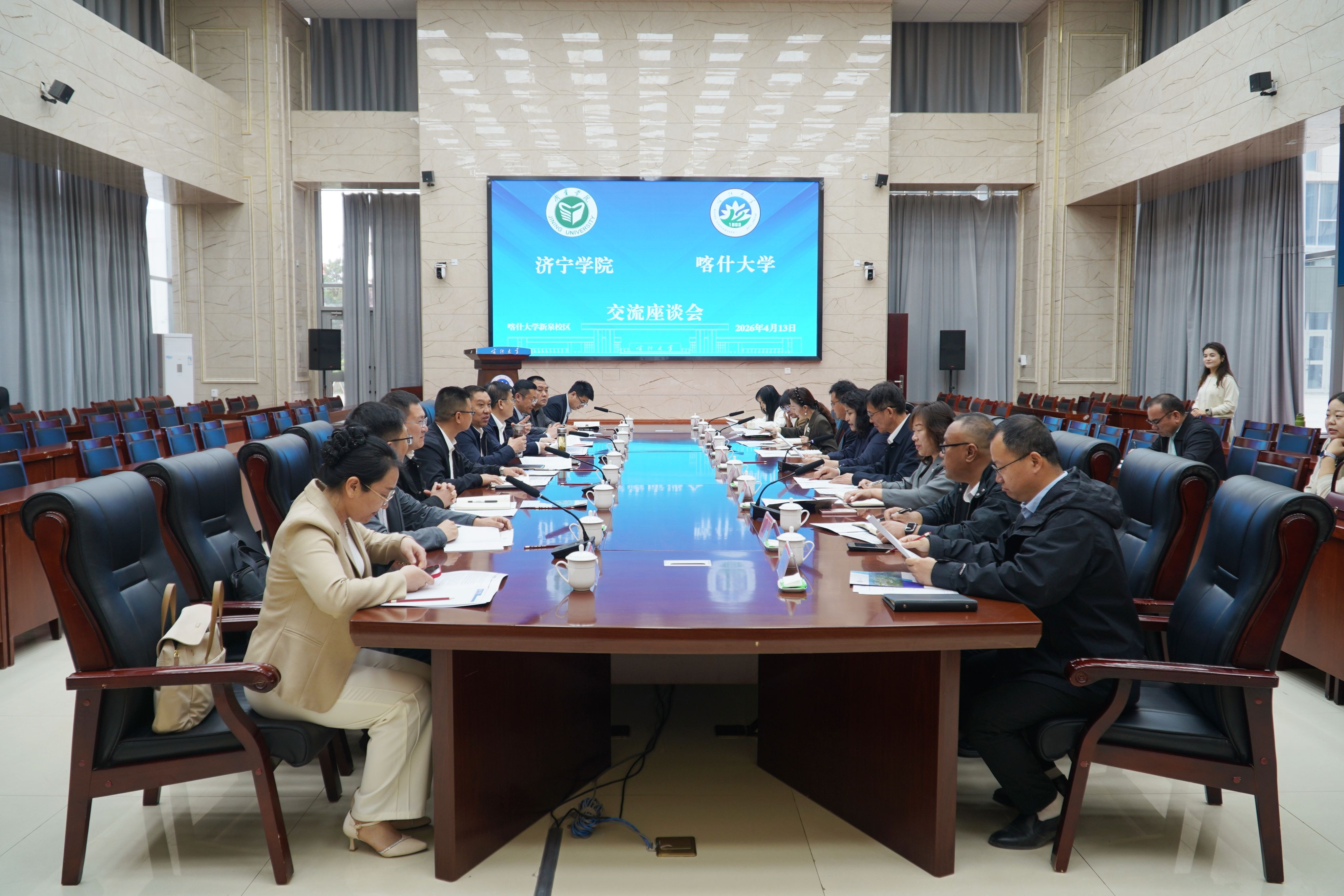 随后,召开对口座谈交流。帕力旦·吐尔逊对仲红波一行的到来表示热烈欢迎,并介绍了喀什大学的办学历史、发展成效、学科建设、人才培养、服务区域发展特色举措,希望以此次交流为契机,在学科共建、人才共育、科研协同等方面深化合作,实现资源共享、优势互补、共同发展。