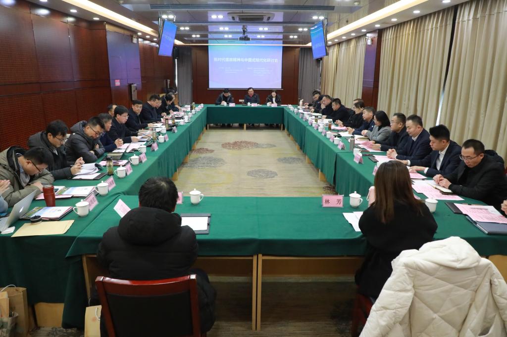 为深入学习贯彻习近平文化思想和习近平总书记视察济宁重要讲话精神,推进中华优秀传统文化创造性转化、创新性发展,助力济宁文化强市建设。12月22日下午,济宁学院、曲阜文化建设示范区推进办公室、共青团济宁市委员会,在曲阜文化建设示范区联合举办了《儒学、儒商精神与中国式现代化》研讨会。曲阜文化建设示范区党工委副书记、推进办主任朱湘华同志主持会议,济宁市十七届人大常委会副主任陈国华,济宁学院党委副书记、课题组组长丰家雷出席并讲话,济宁学院、曲阜文化建设示范区、曲阜市委统战部、孔子研究院、孟子研究院等部门的10余位专家及上海市山东济宁商会、山东动脉智能科技股份有限公司、北京中经智信科技有限公司、中佳海蓝集团、山东济宁心心酒业有限公司等18位企业家代表应邀参加。