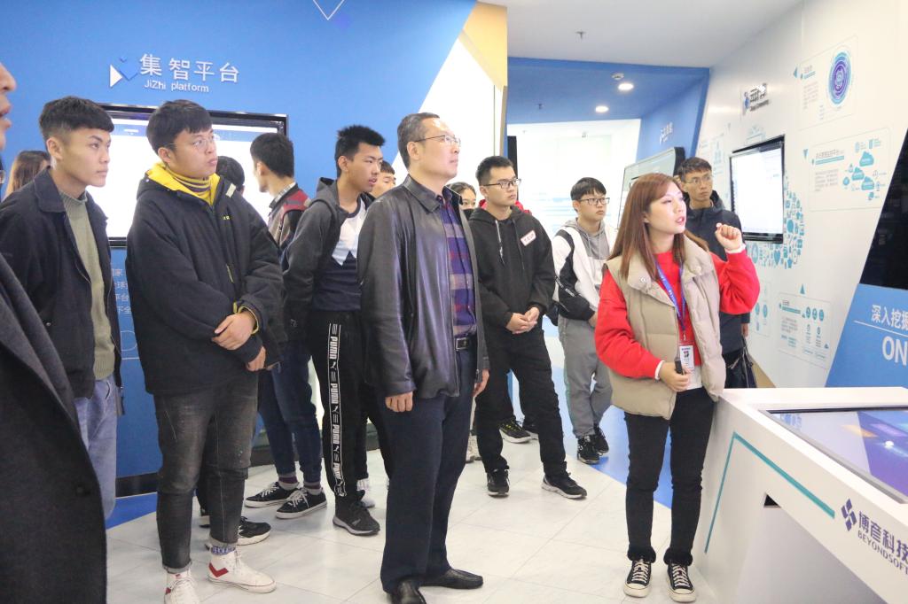 山东博彦集智科技有限公司针对大数据相关专业知识,就公司背景、业务开展以及红麦、达内科技、ISTQB、大数据云管理平台等企业核心技术等方面做了详细介绍,又带领同学们参观了全亚太地区最大的自主开发实验室,体验VR技术。山东动脉智能科技股份有限公司为大家详细展示了环保监控平台系统、云纺织平台应用系统、数字化城市管理系统、无人职守地磅称重系统等已经应用到实际生活中的操作系统,让同学们多方位更全面地领悟自己所学知识在实际中的应用。王绍锋、来维龙、韩西莲等就同学们的专业发展与就业前景,与企业负责人进行座谈。