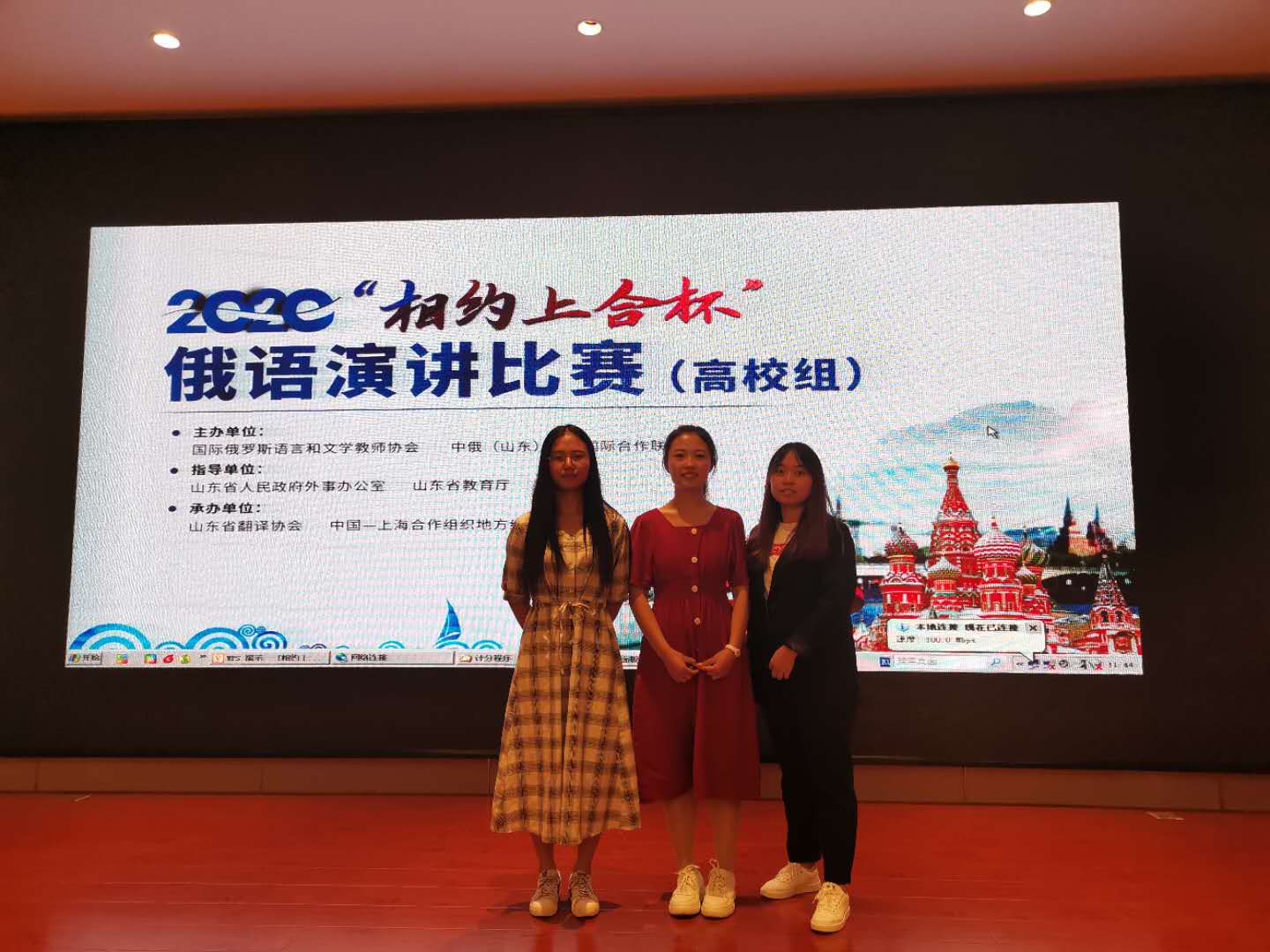 9月25日至26日,“相约上合杯”俄语大赛高校组比赛在济南举办。来自全省30多所高校的84名选手参加了比赛。我校教育系张雪、周静静和经管系盛亚楠三位同学在大学外语教学部程晨老师带领下参加了比赛,荣获三等奖。