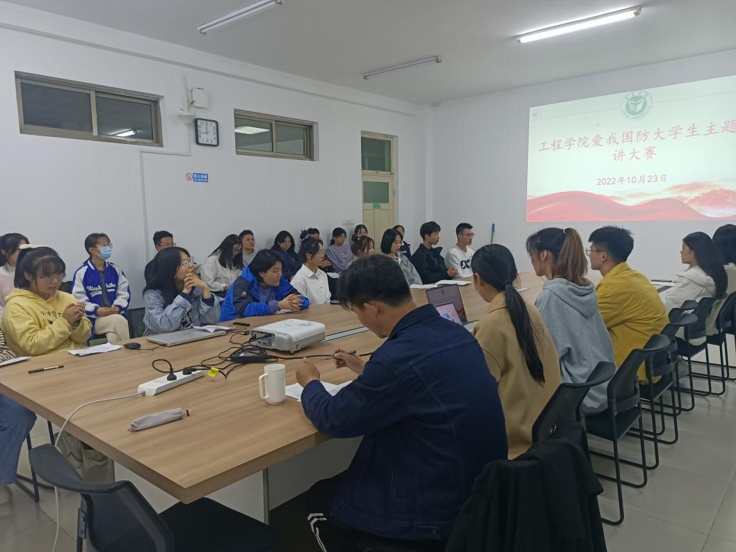 为加强新时代国防教育,激发青年大学生关心国防、热爱国防、建设国防、保卫国防的热情,引导青年学生厚植家国情怀,10月23日晚,工程学院在8号楼C209会议室举行“爱我国防”主题演讲比赛。此次比赛由该院团委副书记肖文婷主持,辅导员朱海成、贾艳丽及学生会主要干部担任本次比赛评委。