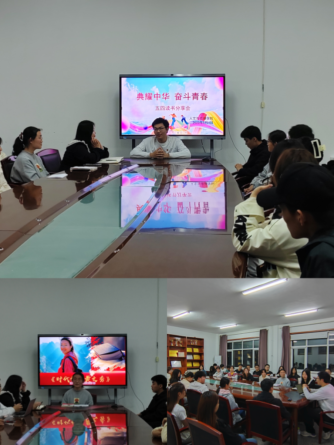 5月4日晚,人文与传播学院在会议室开展“典耀中华奋斗青春”五四读书会。读书会邀请了2022级汉语言文学班赵磊、2022级历史学班陈玉婷作读书分享。