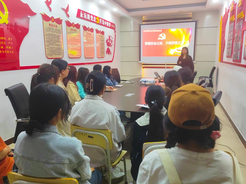 5月7日,化学化工与材料学院学生在宿舍楼七号楼党员活动室开展“星火”微党课进宿舍活动。此次微党课以“紧绷安全之弦,共铸保密之盾”为主题,由学生党员赵娜主讲,14名同学参与活动。