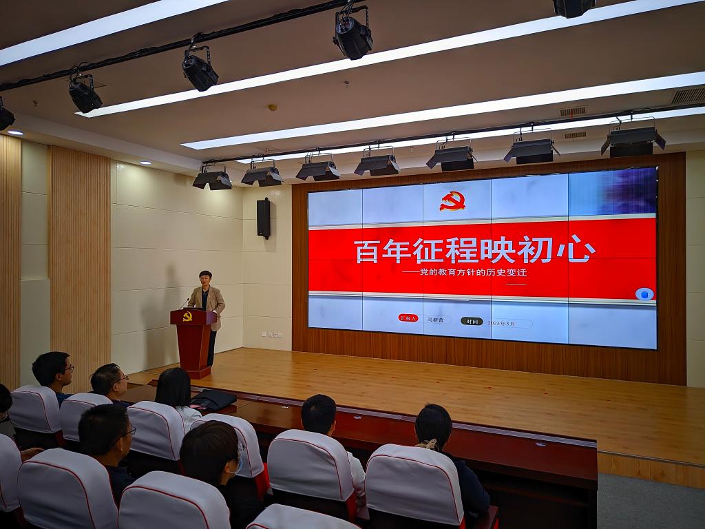 在初心学堂,马新蕾做了题为《百年征程映初心——党的教育方针的历史变迁》党课。她详细介绍了从建党初期到苏区时期、抗日战争时期,新中国成立初期,社会主义革命和建设时期,以及党的十八大以来党的教育方针不断发展、完善过程,使与会党员深刻领悟了为中国人民谋幸福,为中华民族谋复兴——这是一代代中国共产党人不断奋进的根本动力,是中国教育一百年来始终坚守的育人方向。