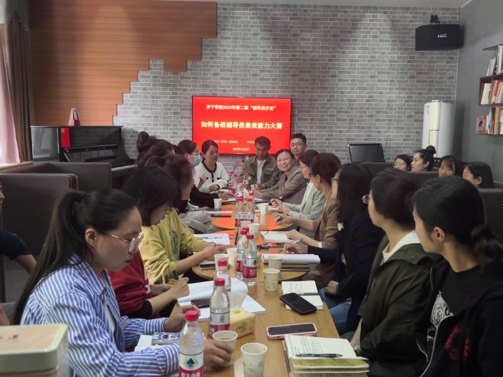 儒商学院袁芬、教师教育学院徐艳艳从省赛备赛经验出发,就辅导员素质能力大赛的赛事沿革与目标、备赛方略与技巧、参赛感悟与思考三方面进行了解读。化学化工与材料学院李文婷、儒商学院宋文豪结合往届比赛真题和自己的备赛经验,重点围绕基础知识测试、谈心谈话、案例分析、理论宣讲等几个环节进行了经验分享。学生工作处教育管理科科长赵燕从自己工作经验出发,强调“功夫在日常”,要将比赛内容与日常工作紧密结合,学生工作处也会为大家做好一切服务工作。
