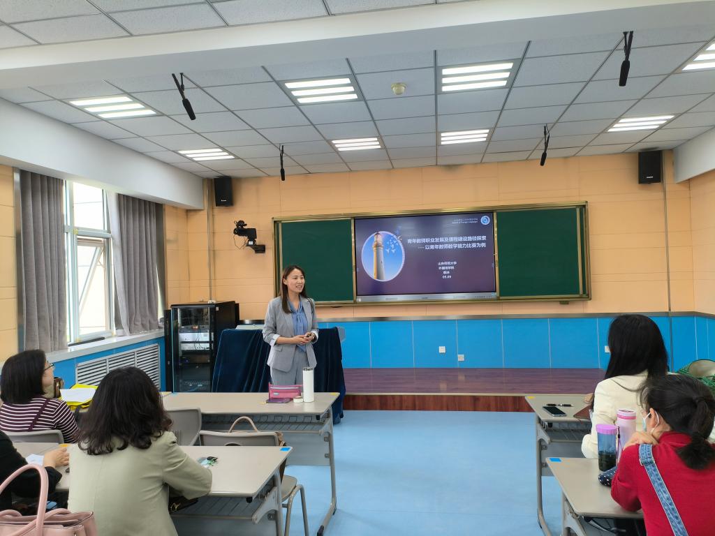 5月9日下午,外国语学院在3号楼A502室举办教师发展沙龙第七期活动,邀请山东师范大学韩冰副教授作题为“青年教师职业发展及课程建设路径探索——以青年教师教学能力比赛为例”的学术报告,副院长张颖、办公室主任闫彩霞、教学秘书栾珍、院长助理刘暖及骨干教师参加。本次活动由张颖主持。