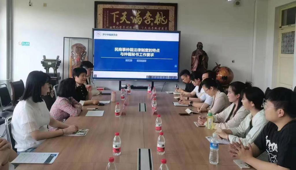 为了让法治走进校园,进一步增强同学们的法治意识,接受普法教育,2023年5月19日下午,济宁仲裁委员会办公室审理科科长孔娟、综合科副科长宋文贤、仲裁秘书徐圣博到济宁学院儒商学院进行“普法进校园”主题报告。儒商学院副书记孔国良、副院长高尚君、青年教师和毕业班辅导员参与会谈。报告中,孔娟通过对我国仲裁法的发展背景、仲裁制度的设立、仲裁裁决的过程进行了深入浅出的讲解,使同学们和老师们对民商事仲裁相关的法律制度有了进一步认识。为增进毕业生对岗位的认知了解,提高毕业生就业满意度,宋文贤通过生动的语言介绍了仲裁秘书岗位工作,并对仲裁秘书的待遇、招聘条件等方面进行详细说明。招聘方和毕业生围绕仲裁招聘条件、签约合同、就业培训、以及待遇等内容进行了深入的沟通交流。
