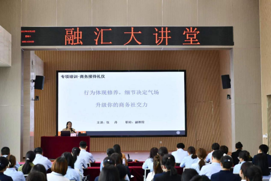 5月21日,山东融汇物产集团组织开展融汇大讲堂专题培训。儒商学院副教授、旅游管理教研室主任张丹,应邀为全体学员讲授《商务接待礼仪》,从日常见面礼仪、客户接待礼仪、陪同用餐礼仪、客户通联礼仪四个层面解读现代商务接待礼仪的重要性及相应要求,同步进行礼仪实操演练,让参训学员在生动有趣的课堂氛围中认识到商务接待的重要性,更加注重塑造职业精神、提升职业气场,从而更好地完成各级各类商务接待任务。