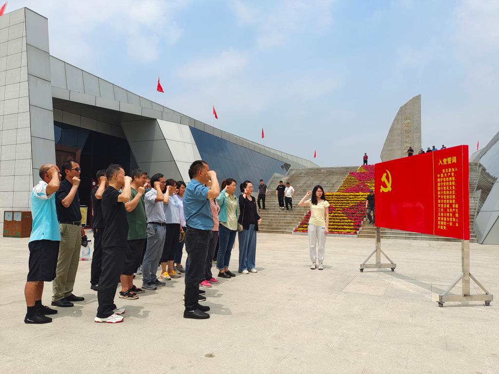 在铁道游击队纪念碑前,全体党员面向党旗重温了入党誓词。在铁道游击队纪念馆展厅,大家怀揣初心与使命以及对英烈的敬仰之情,参观学习了渔民自制神秘杀敌武器、王家三妯娌智斗日军、老大娘抢救伤员、保护秘密交通线等反映了微山湖儿女的英勇事迹和不怕牺牲的大无畏革命精神,一段段铭心的历史深深感染着每一位党员。