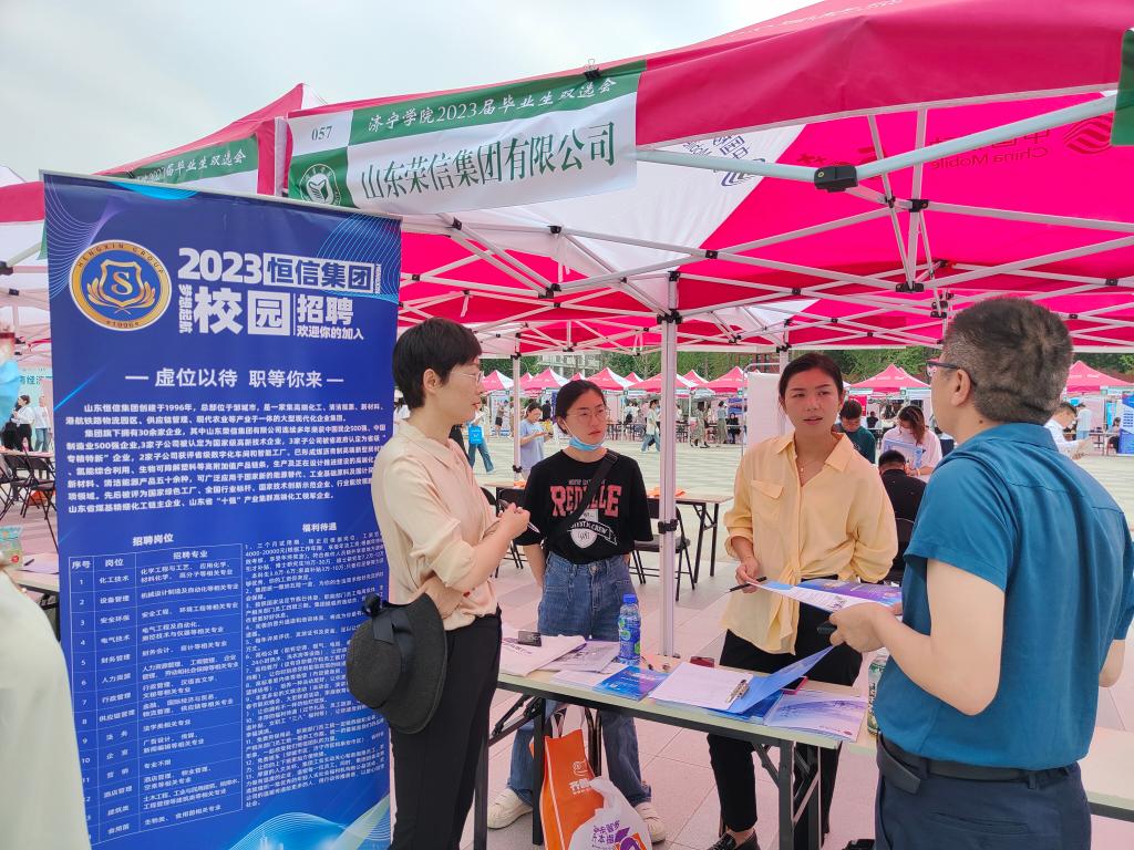 在双选会现场,我院走访了济宁恒信集团、核芯医药(山东)有限公司、山东圣鹏科技股份有限公司、淄博齐翔腾达化工股份有限公司、山东硅科新材料有限公司等十余家企业招聘负责人,详细了解就岗位需求、薪资待遇等内容,征求企业关于学生培养方面的建议意见,对企业与学院进一步开展实习实践、参观考察、联合培养学生等方面合作进行沟通交流。学院与恒信集团等企业确定了召开专场招聘的意向。