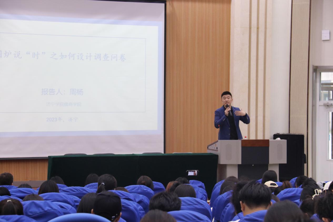 5月24日,儒商学院在3号楼报告厅举行博士沙龙暨教师专业发展活动第五场报告,周杨博士以“围炉说‘时’之如何设计调查问卷”为题作专题报告。该院博士徐琮、陈蕊蕊、蒋玉芳以及500余名学生参加报告会。报告会由该院院长霍雨慧主持。