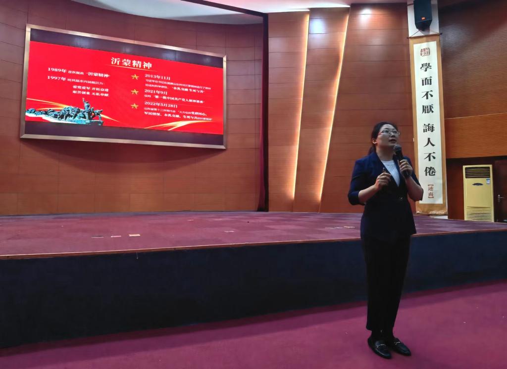 为深入开展学习贯彻习近平新时代中国特色社会主义思想主题教育,激励广大师生弘扬沂蒙精神,传承红色基因,赓续红色力量,凝聚奋斗精神,5月25日,工程学院举办“弘扬沂蒙精神,激发奋进力量”专题报告会,特邀鲁南制药集团展览馆馆长、临沂大学马克思主义学院兼职教授、临沂市委党校鲁南制药分校高级讲师齐凤云进行沂蒙精神宣讲,活动由工程学院党委副书记许言强主持。
