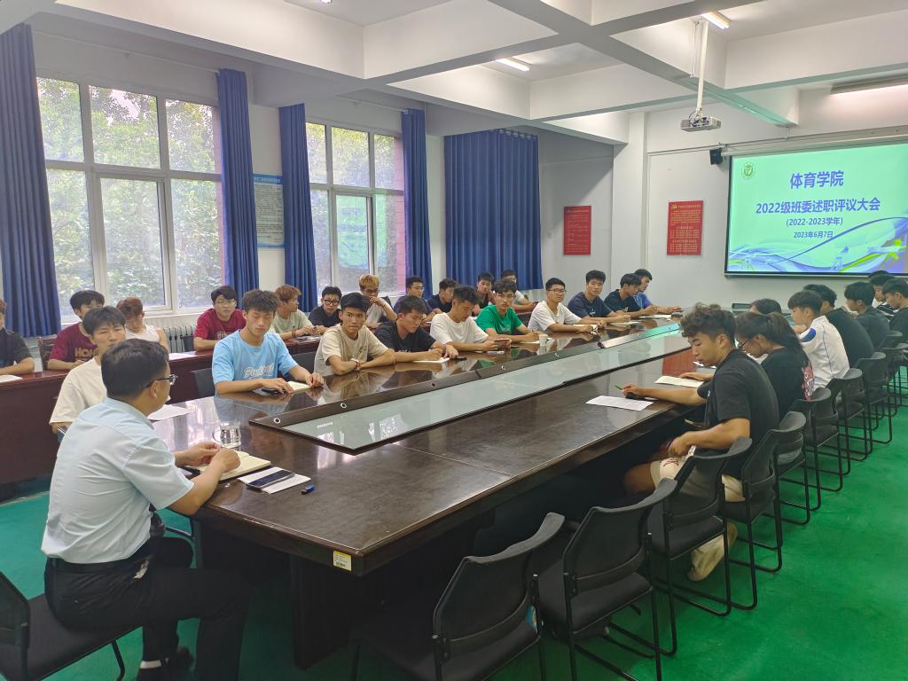 为加强我院学生干部队伍建设,提高学生干部的思想政治素质和工作能力,6月7日,体育学院在二楼会议室举行2022级班委述职评议大会。会议由体育学院党委副书记辛允东主持,2022级各班班委参会。